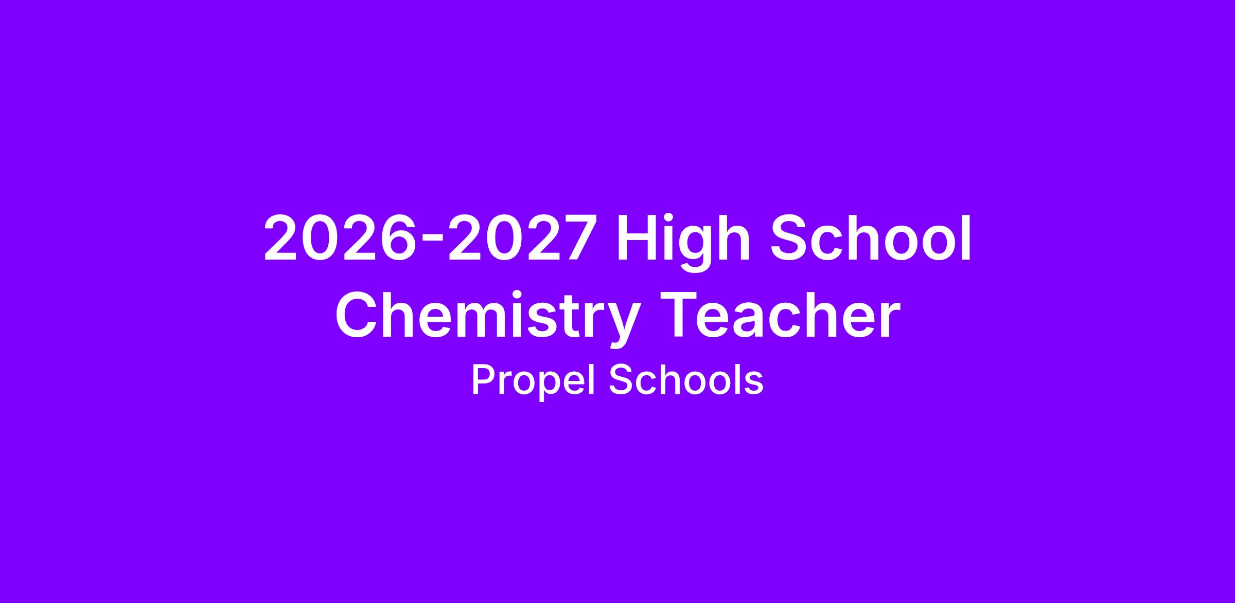 Propel seeks a High School Chemistry Teacher. This position is for the 2026-2027 school year. The first day of orientation will be August 3rd, 2026.