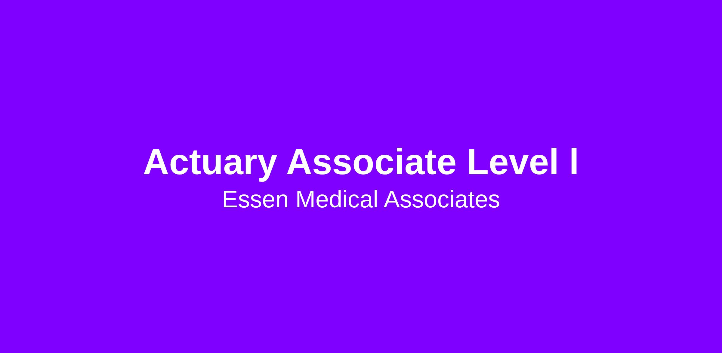 Job Summary: Essen Health Care has a posiition open for an Actuary Associate Level l who will be responsible for performing various actuarial functions, such as analysing data, developing and maintaining models, and preparing reports.