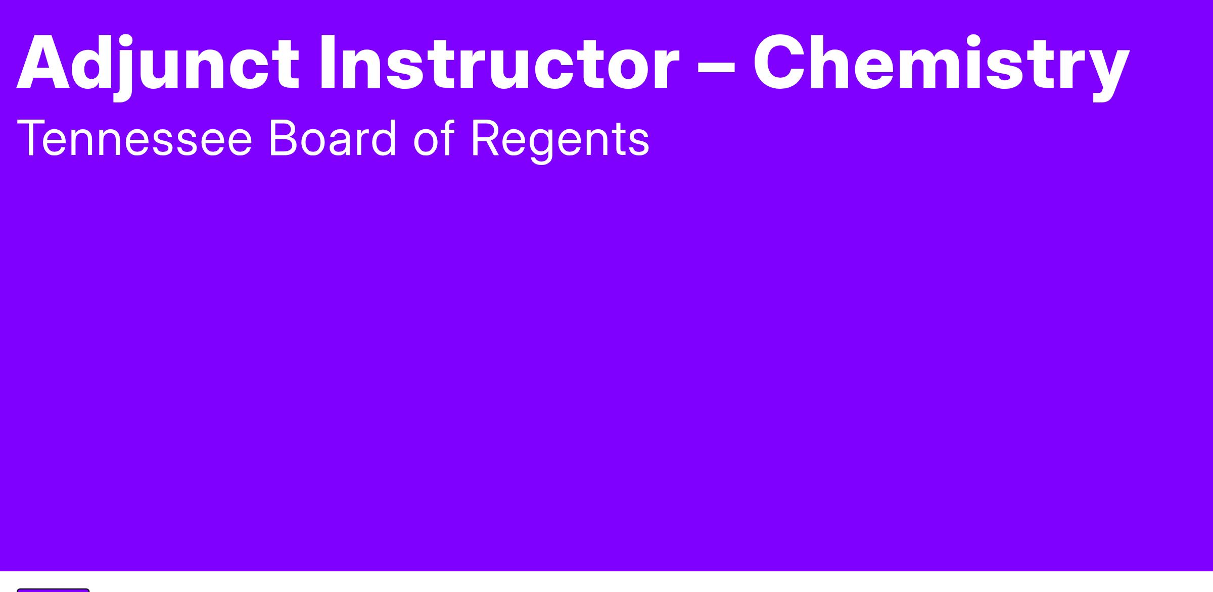 Required Qualifications: Master’s degree or higher from a regionally accredited college/university with at least 18 graduate semester hours in the Chemistry teaching field