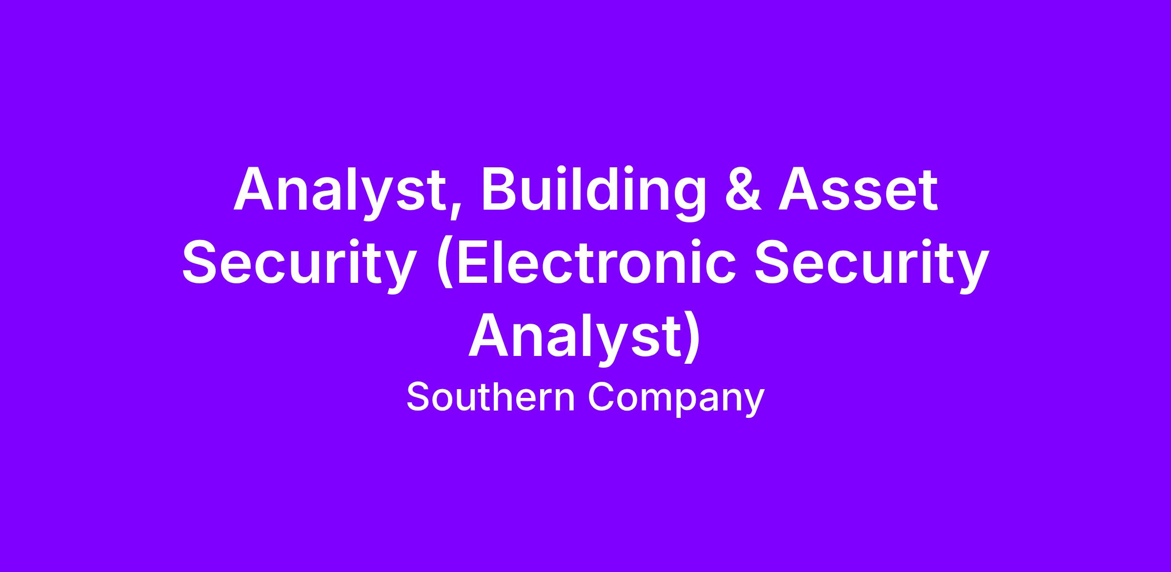 Analyst, Building & Asset Security (Electronic Security Analyst)