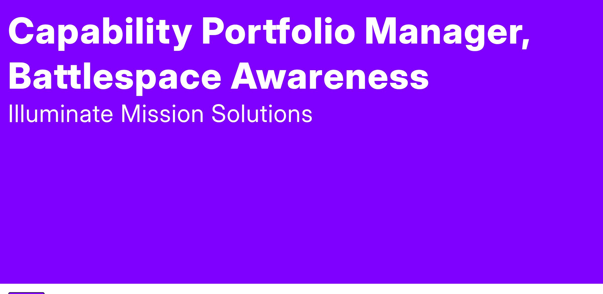 Illuminate seeks an exceptionally qualified Capability Portfolio Manager (CPM) to support Joint Staff Battlespace Awareness (J28) Collection Capabilities. Illuminate is looking for a Capability Portfolio Manager to support the Deputy Directorate for Battlespace Awareness (J28) and the Battlespace Awareness Functional Capabilities Board (BA FCB). The candidate will be capable of supporting the Joint Staff/ J2’s mission to provide Secretary of Defense (SecDef), Chairman of the Joint Chiefs of Staff (CJCS), Combatant Commanders, and the Joint Staff (JS) with national-level military intelligence requirements products and future capability development.