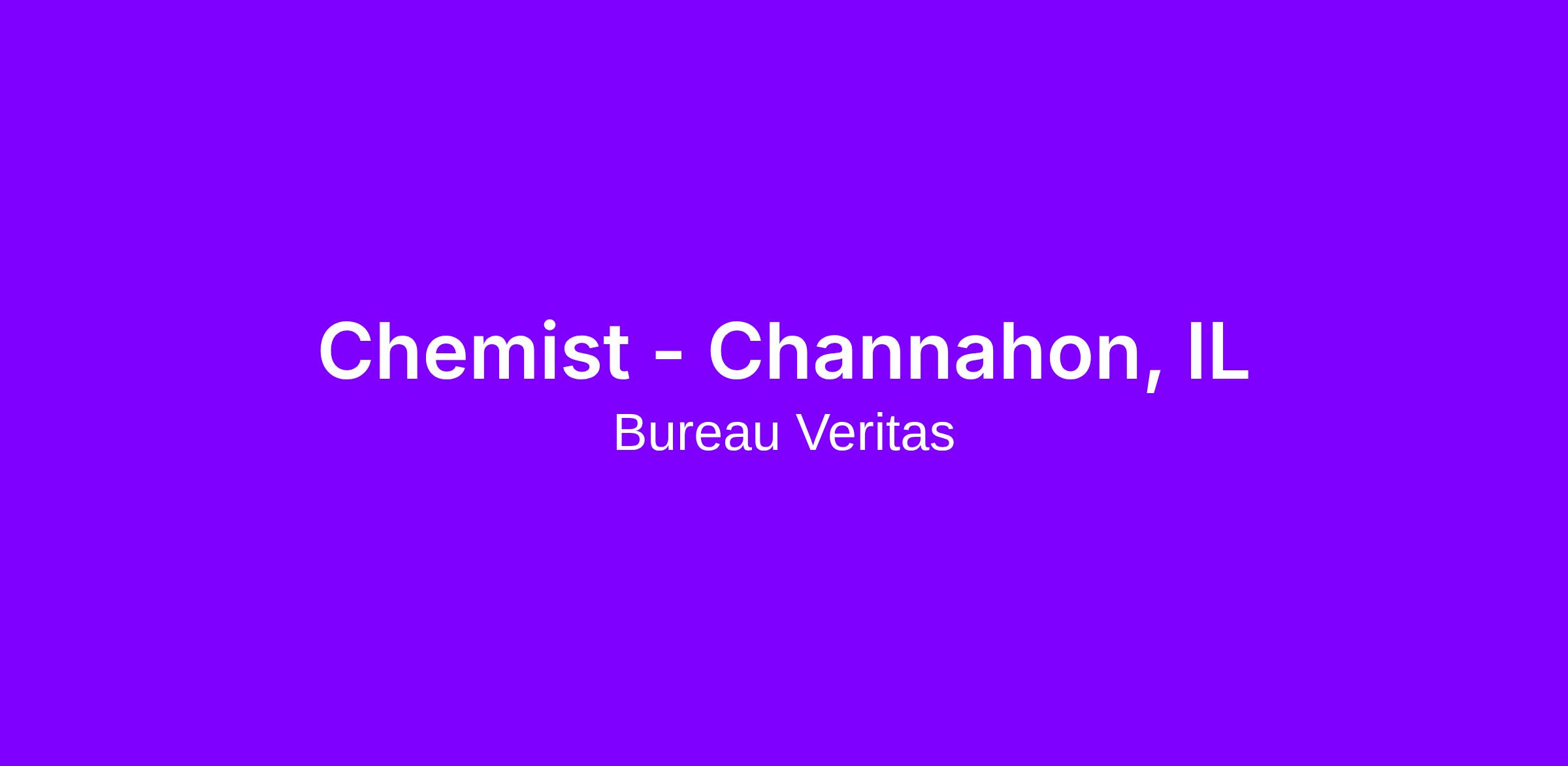 Job Title: Chemist - Channahon, IL (This role will work 12 hours Sat/Sun and be on call for weekday vacation sick calls).