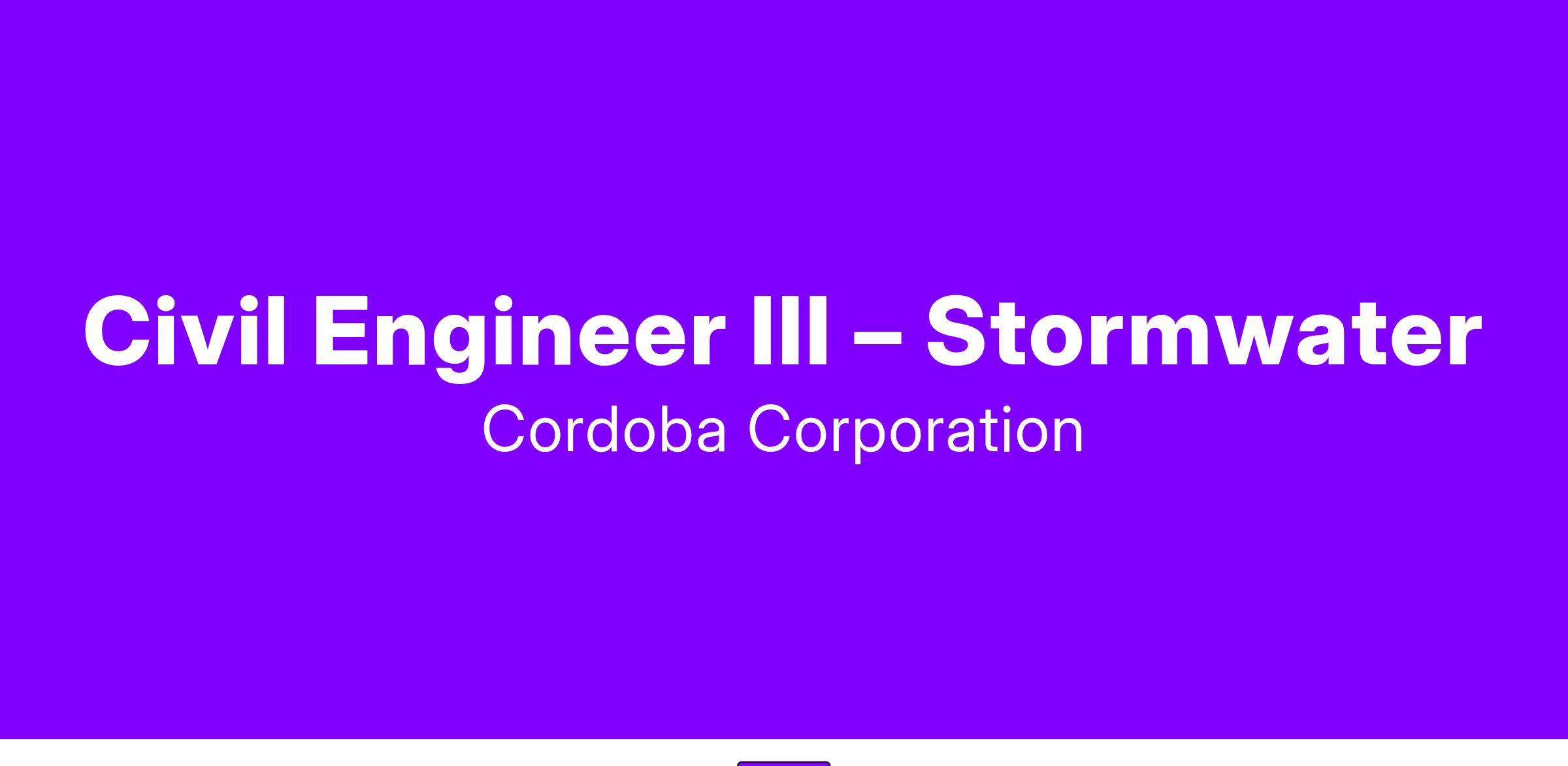 Cordoba Corporation is a leading civil engineering and design firm based in California. We are seeking a Civil Engineer III with hands-on experience with stormwater projects. The primary function will be assisting in performing planning, engineering, design, drafting and cost estimating for potable water projects, wastewater projects, pipelines, pump stations, green streets, low impact development (LID), stormwater quality and stormwater reuse projects. The position is a combination of engineer/designer/drafter. The successful candidate will complete smaller projects independently including engineering calculations, CAD drawings, and construction cost estimates and participate as a member of a team of engineers and drafters to complete larger projects. Project components will include sidewalks and ramps, traffic control devices, striping and marking, pressure and gravity pipelines, pump stations, storage tanks, cisterns, drywells and bioswales. Additional duties will include hydrology and hydraulic modelling, preparing GIS maps, and writing technical reports.