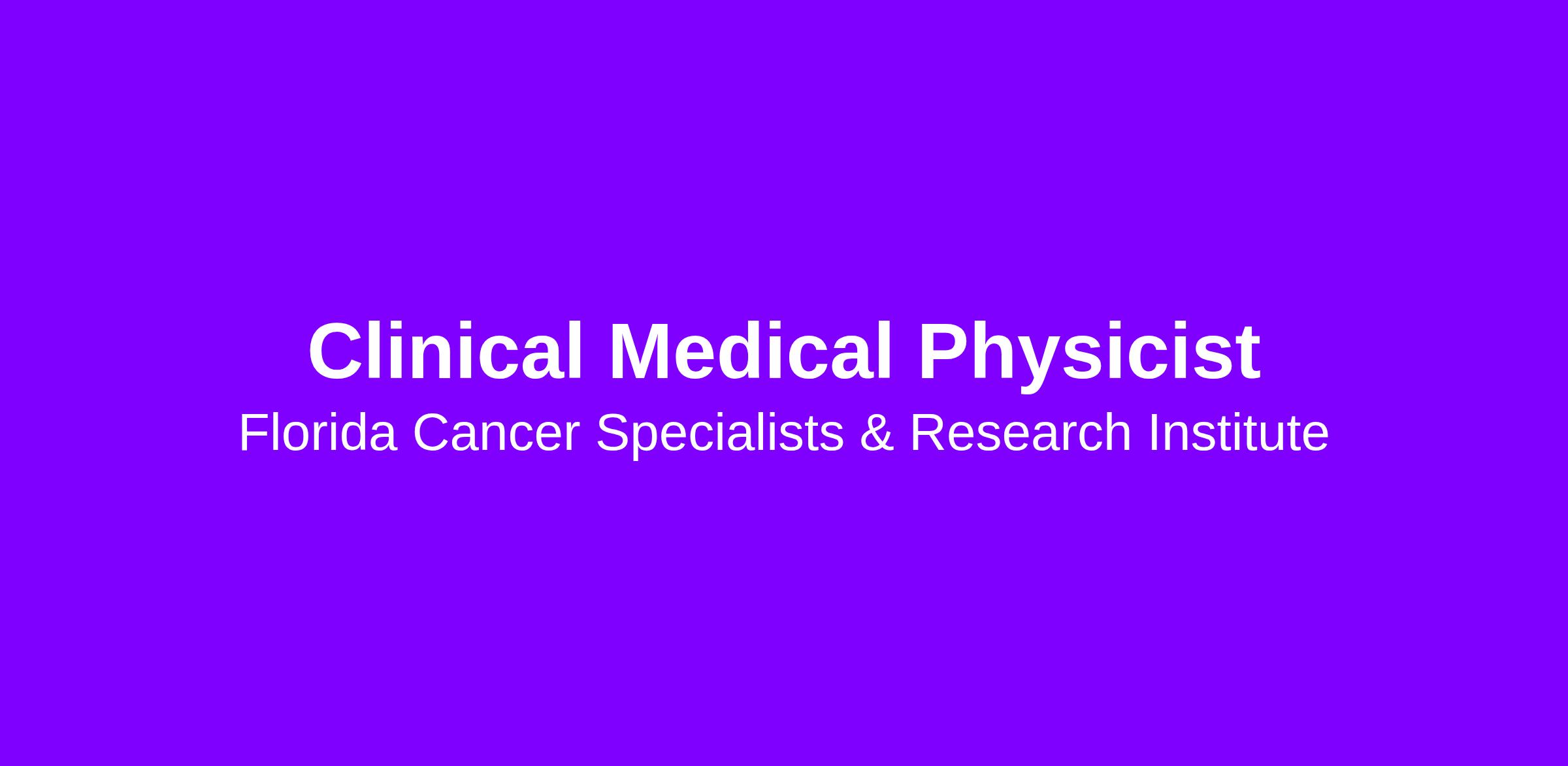 Perform day-to-day clinical physics and dosimetry activities related to the operations of the Florida Cancer Specialist Radiation Oncology Centers under the direction of the Director of Medical Physics. The physics and dosimetry team provides technical services to meet the organizational mission of high quality and safety in the delivery of effective and efficient clinical radiation oncology care. This includes consultation with physicians, as well as treatment plan development and implementation in collaboration with members of the radiation oncology team (i.e. physicians, dosimetrists, therapists, and nursing staff), and quality assurance of treatment delivery and systems. Travel between radiation oncology centers (approx. 25 miles) may be required. Demonstrates working knowledge of all facets of role, relevant regulations, and organizational and departmental policies and procedures. Performs other duties and projects as assigned. Performs all duties in accordance with regulatory requirements and organizational policies and procedures.