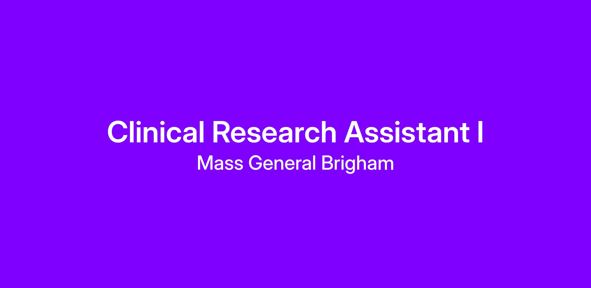 Clinical Research Assistant I, IG