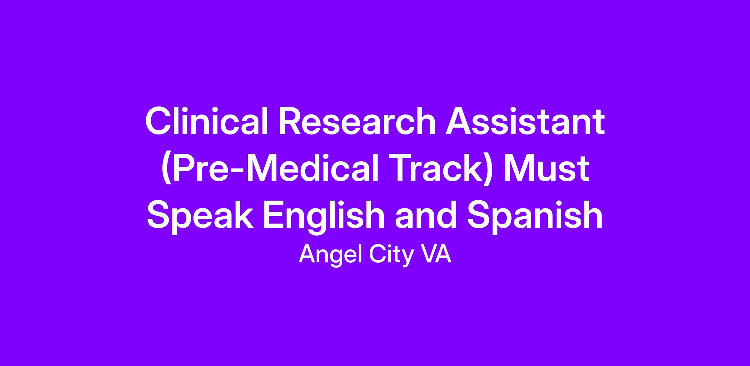 Job Title: Clinical Research Assistant (Pre-Medical Track).
