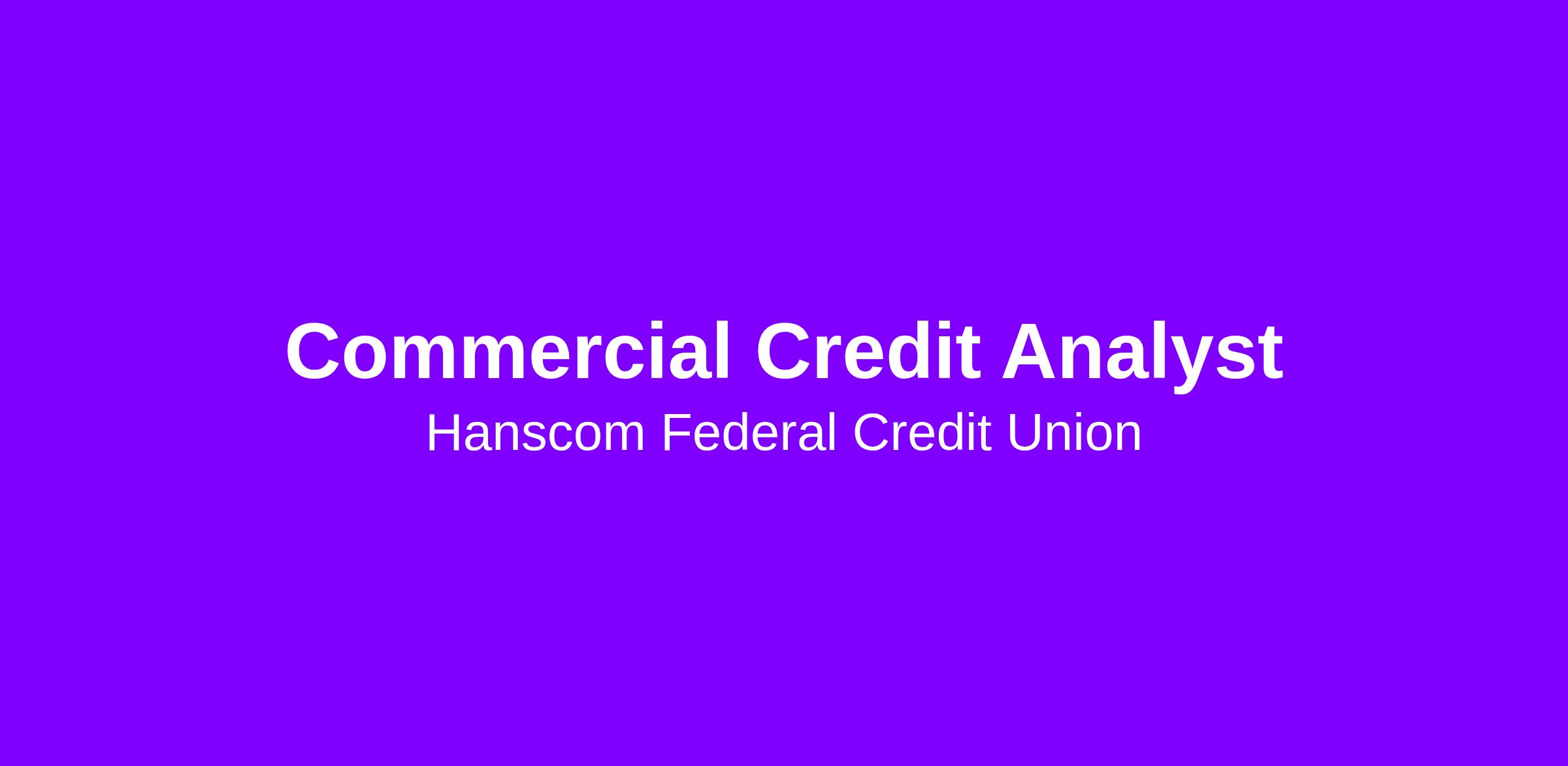 Who you are – Commercial Credit Analyst