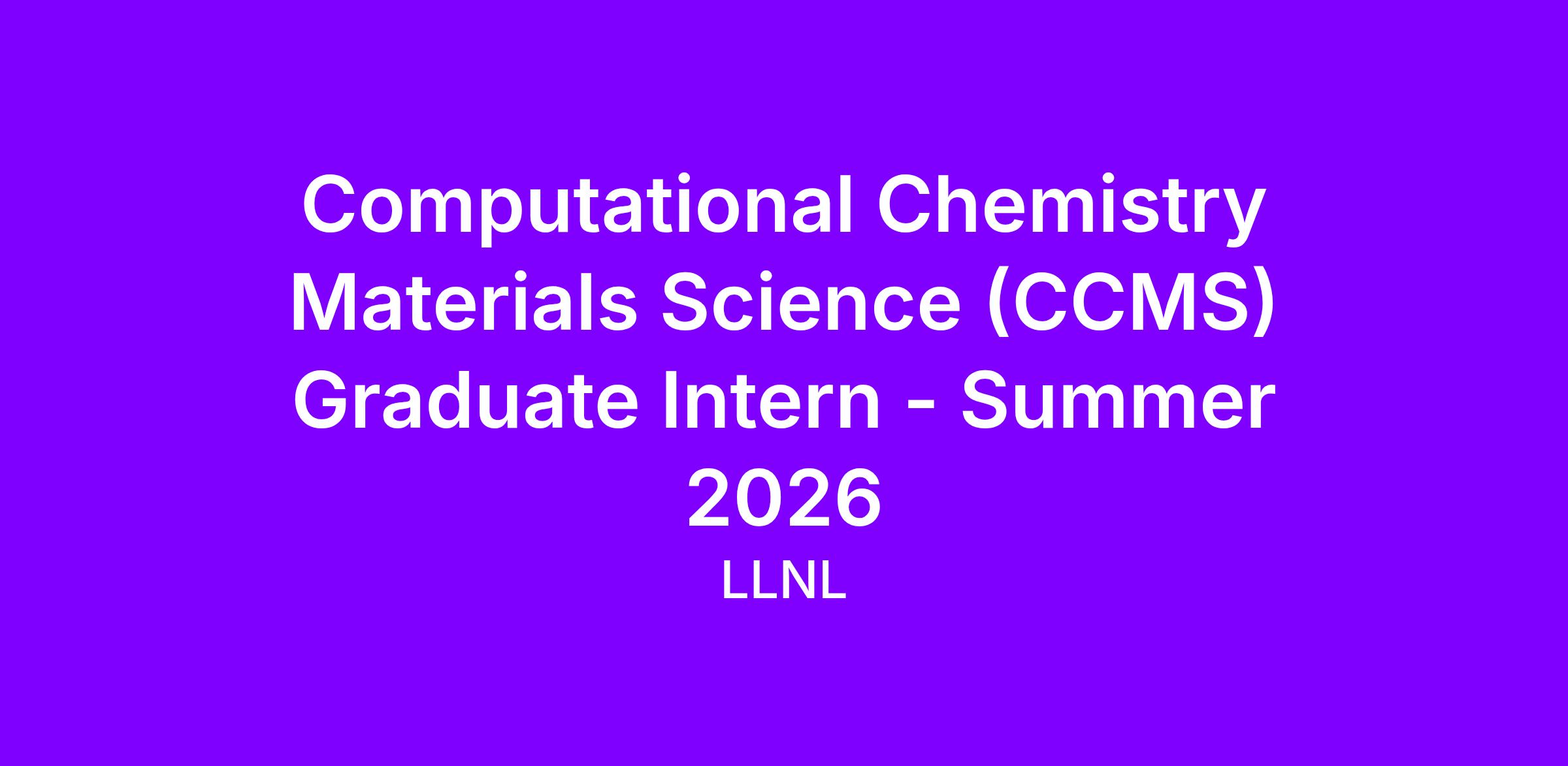 We have multiple openings for graduate students to engage in practical research experience to further their educational goals in the Computational Chemistry and Materials Science Summer Institute. You will research projects in the development and application of methods in computational materials science, computational chemistry, and other related areas of computational science. These positions are in Materials Science Division and are virtual.