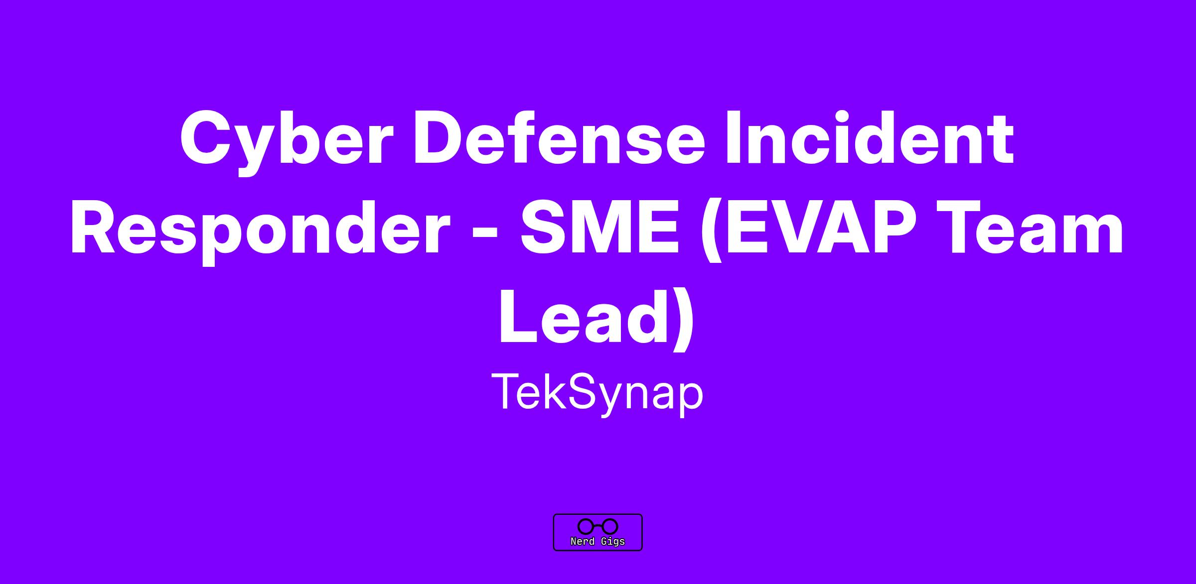 We are seeking a Cyber Defense Incident Responder-SME (EVAP Team Lead) to join our team supporting a government customer.