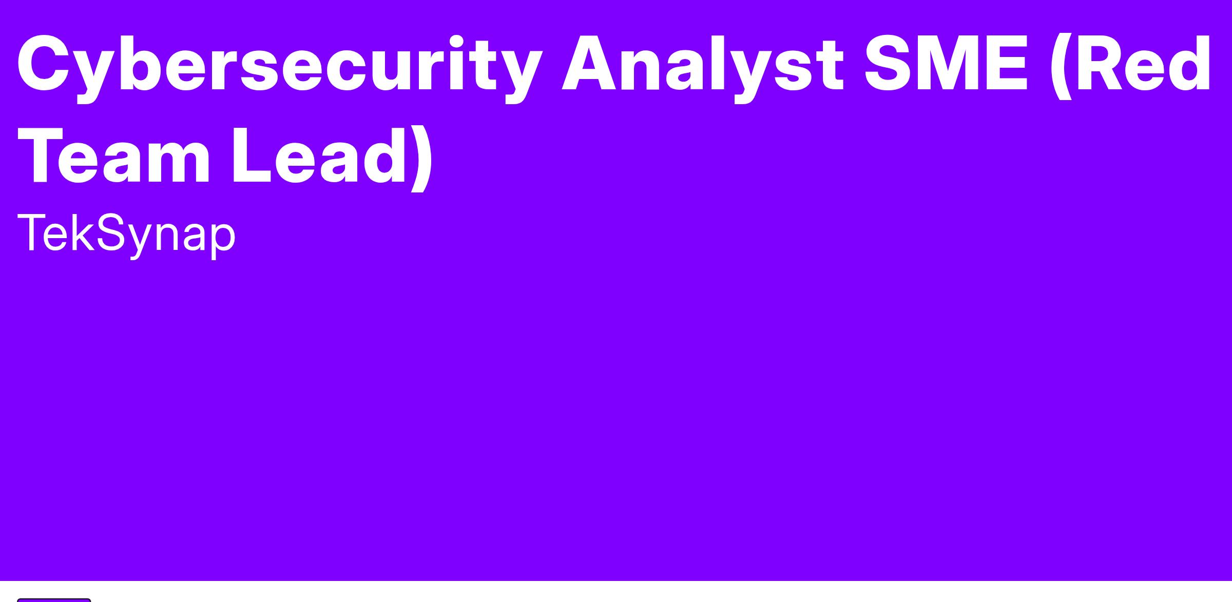 We are seeking a Cybersecurity Analyst SME (Red Team Lead) to join our team supporting a government customer.