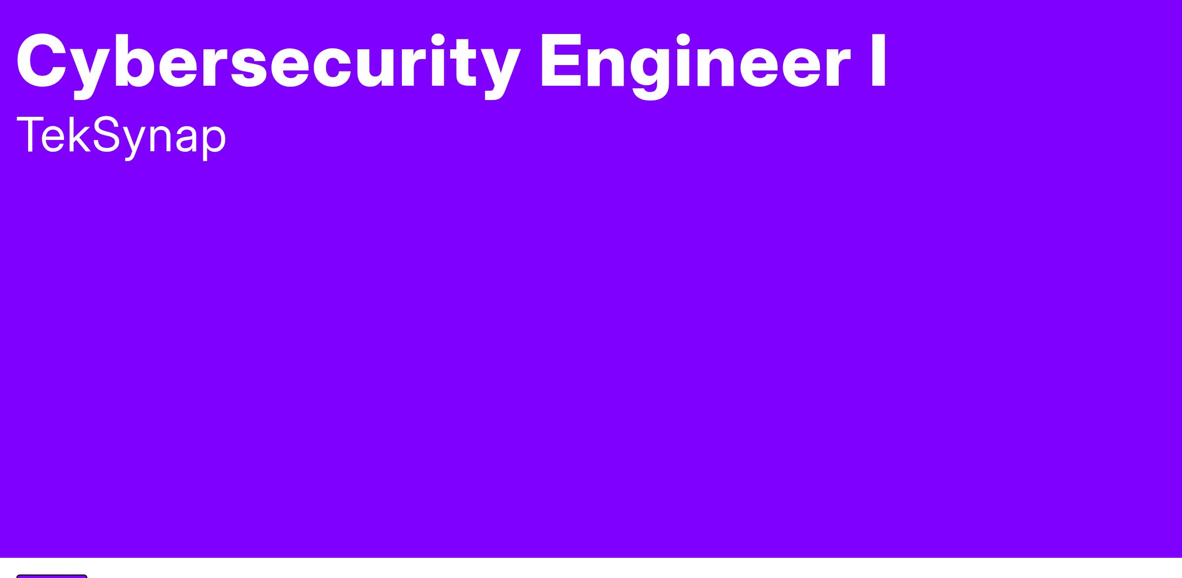 By applying to a role at TekSynap you are providing consent to receive text messages regarding your interview and employment status. If at any time you would like to opt out of text messaging, respond "STOP".