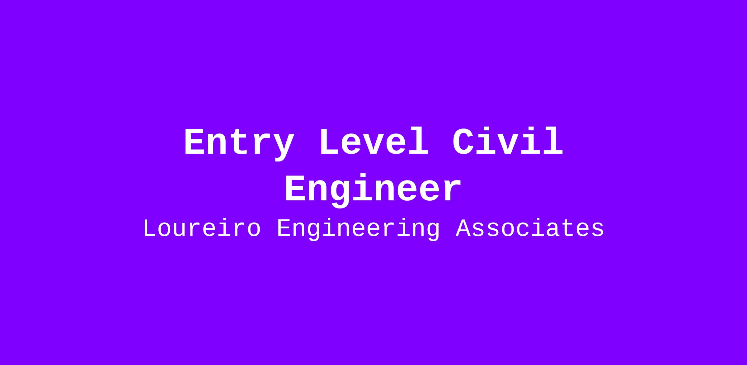 Loureiro Engineering Associates Inc. is an Equal Opportunity/Affirmative Action Employer. All qualified applicants will receive consideration without regard to race, color, religion, sex, national origin, disability, or protected veteran status.