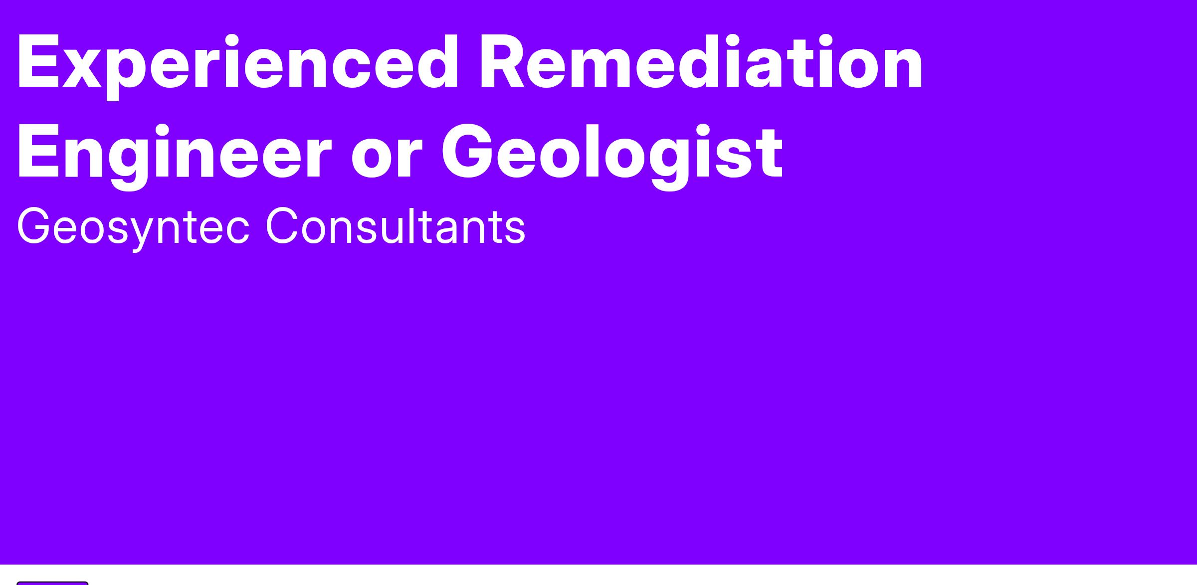 Geosyntec has an exciting opportunity for an Experienced Remediation Engineer or Geologist in our Salt Lake City, Utah office. This position is well-suited for a talented, highly experienced individual who is interested in being a leader and contributing to innovative and challenging projects, including the financial and technical evaluation, design, permitting, and construction stages.