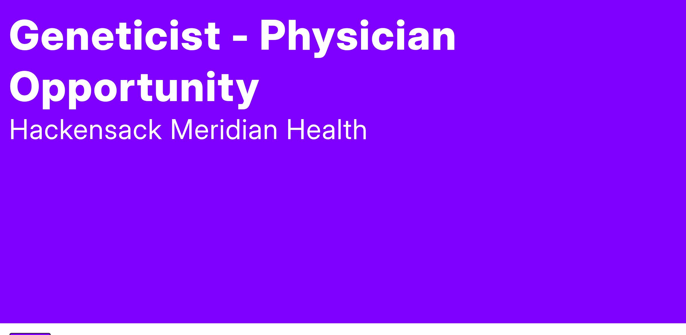 Hackensack Meridian Health (HMH) is seeking a board certified / board eligible geneticist to join our multidisciplinary team in Hackensack, New Jersey (NJ). Our program is one of the largest and most advanced of its kind in NJ. Our team of board certified geneticists and licensed genetic counselors see patients of all ages, providing support and education throughout multiple HMH network hospitals. HMH serves as a referral screening center for the NJ newborn screening program.