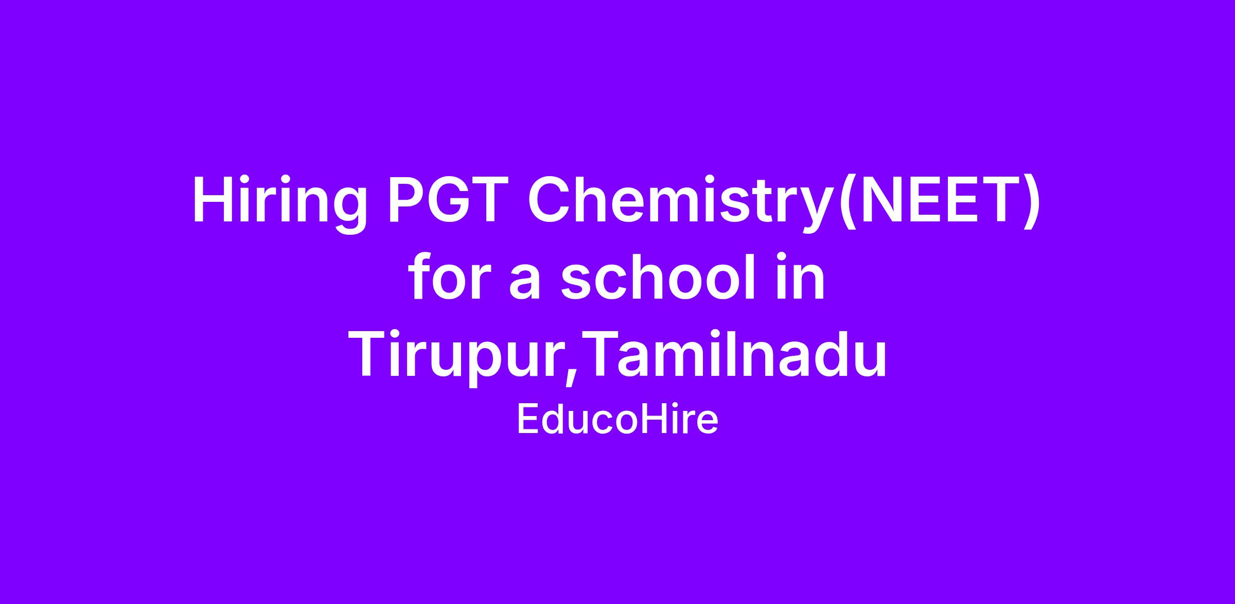 Hiring PGT Chemistry(NEET) for a school in Tirupur,Tamilnadu