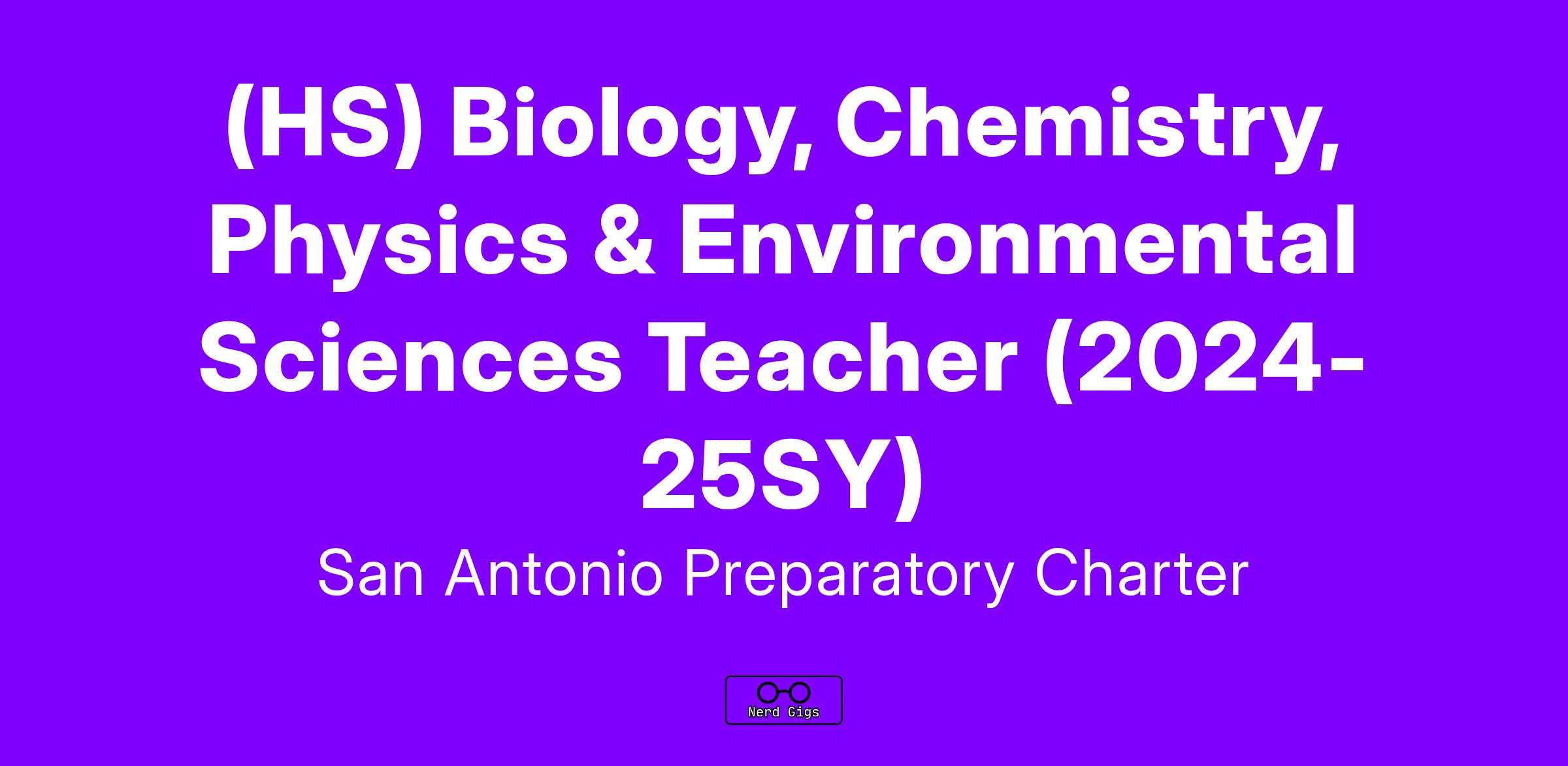 (HS) Biology, Chemistry, Physics & Environmental Sciences Teacher (2024-25 SY)