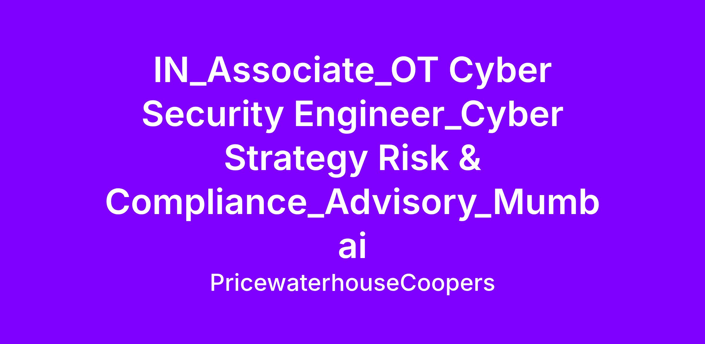 At PwC, our people in cybersecurity focus on protecting organisations from cyber threats through advanced technologies and strategies. They work to identify vulnerabilities, develop secure systems, and provide proactive solutions to safeguard sensitive data.Why PWC