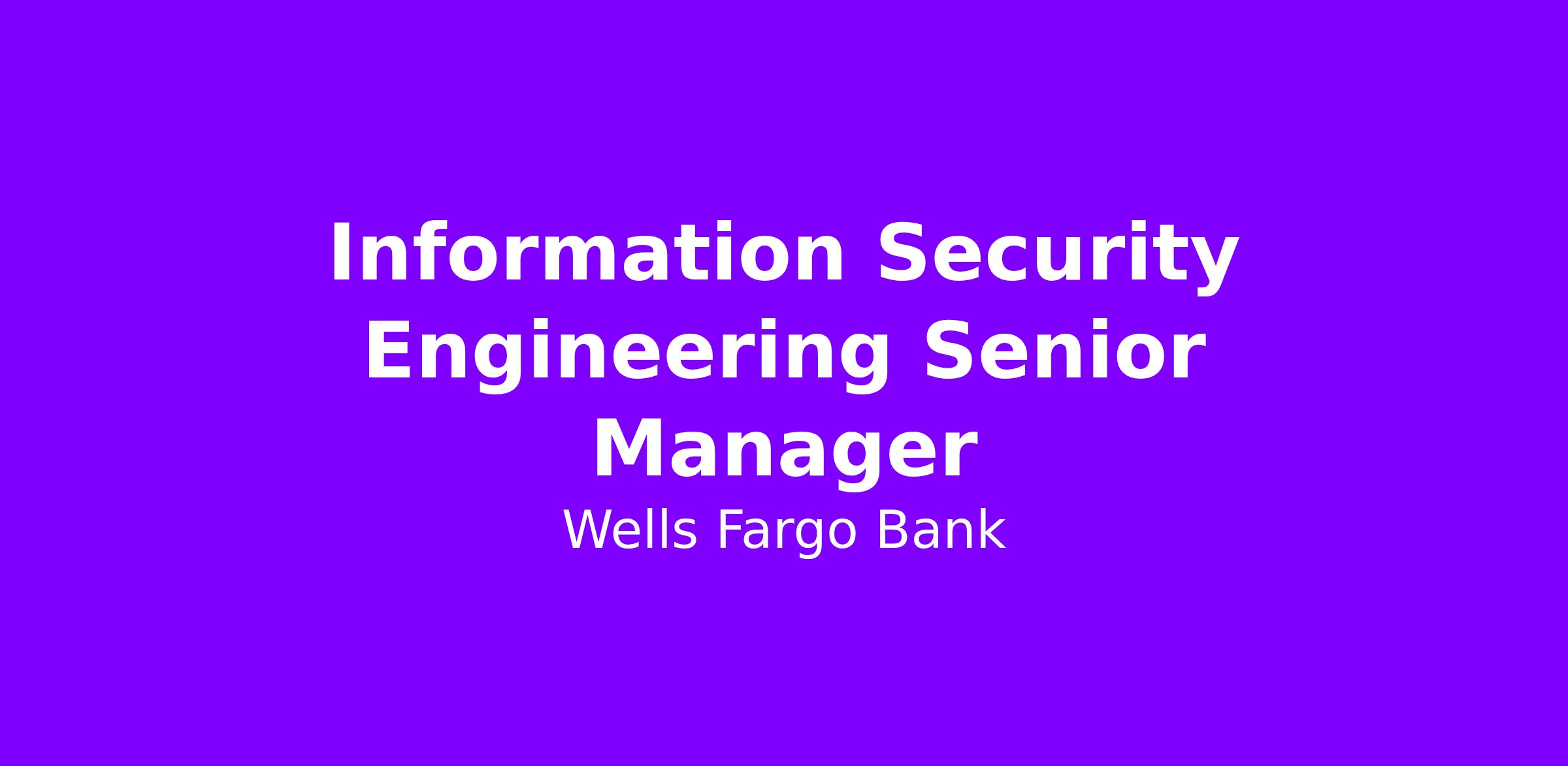 Wells Fargo is seeking a Information Security Engineering Senior Manager
