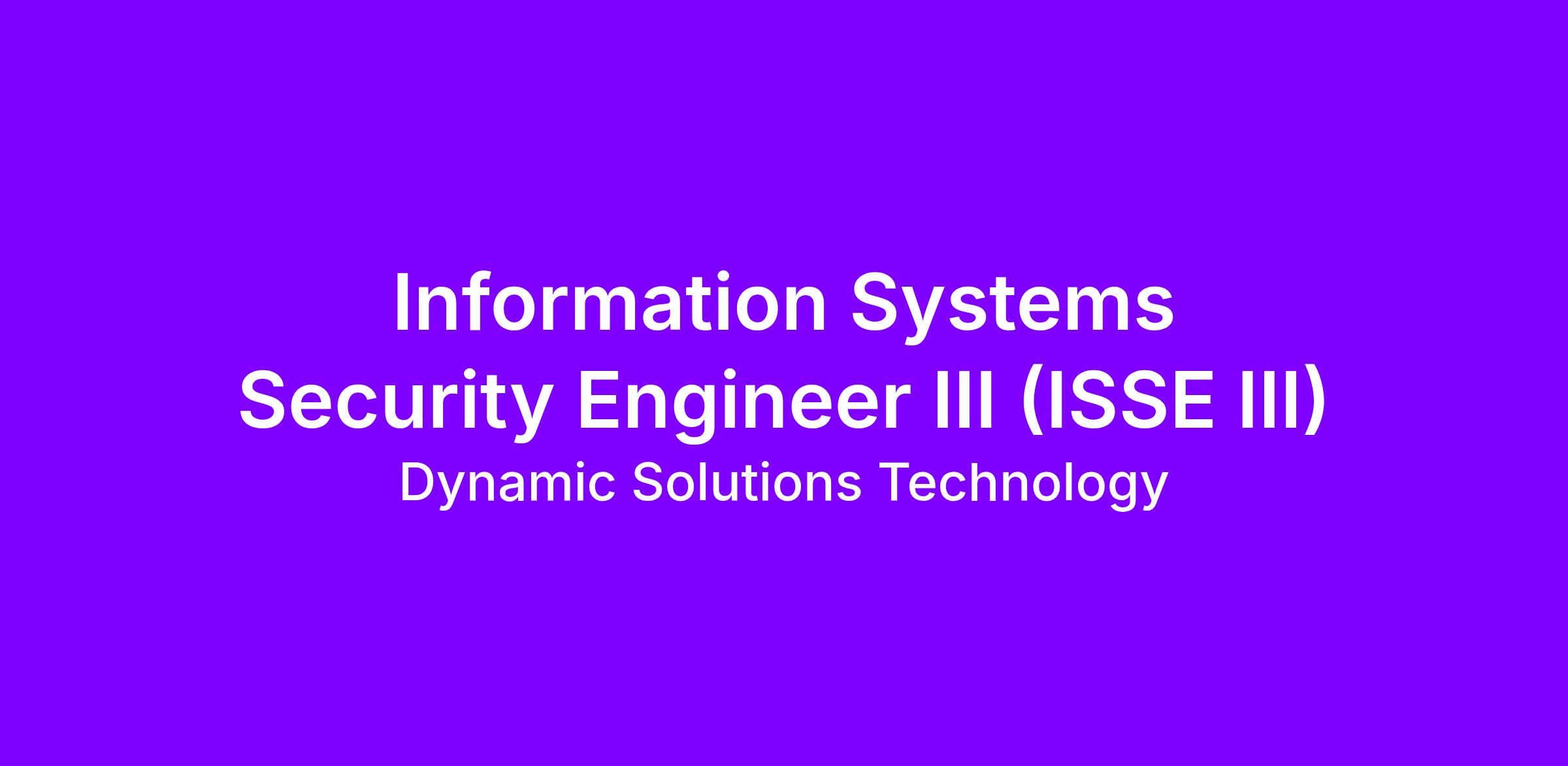 Dynamic Solutions Technology, LLC, a premier strategic services firm that meets IT and Service needs for commercial and government clients, is seeking a full-time Information Systems Security Engineer III (ISSE III). This position is an exempt role that support will be provided on site in the government customer's area of operation in the Philadelphia, PA location.