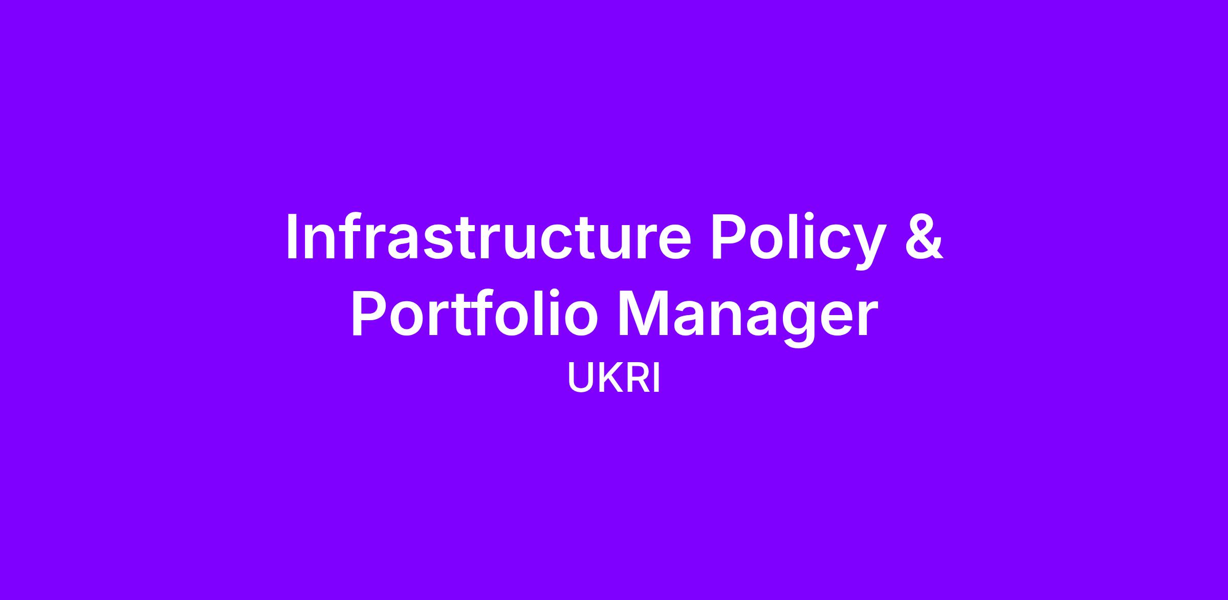 We are looking for a Policy & Portfolio Manager to join the UKRI Infrastructure Team to support the delivery of UKRI’s Infrastructure Fund and the Infrastructure Portfolio Office function for the two cross-cutting funds that the team manages.