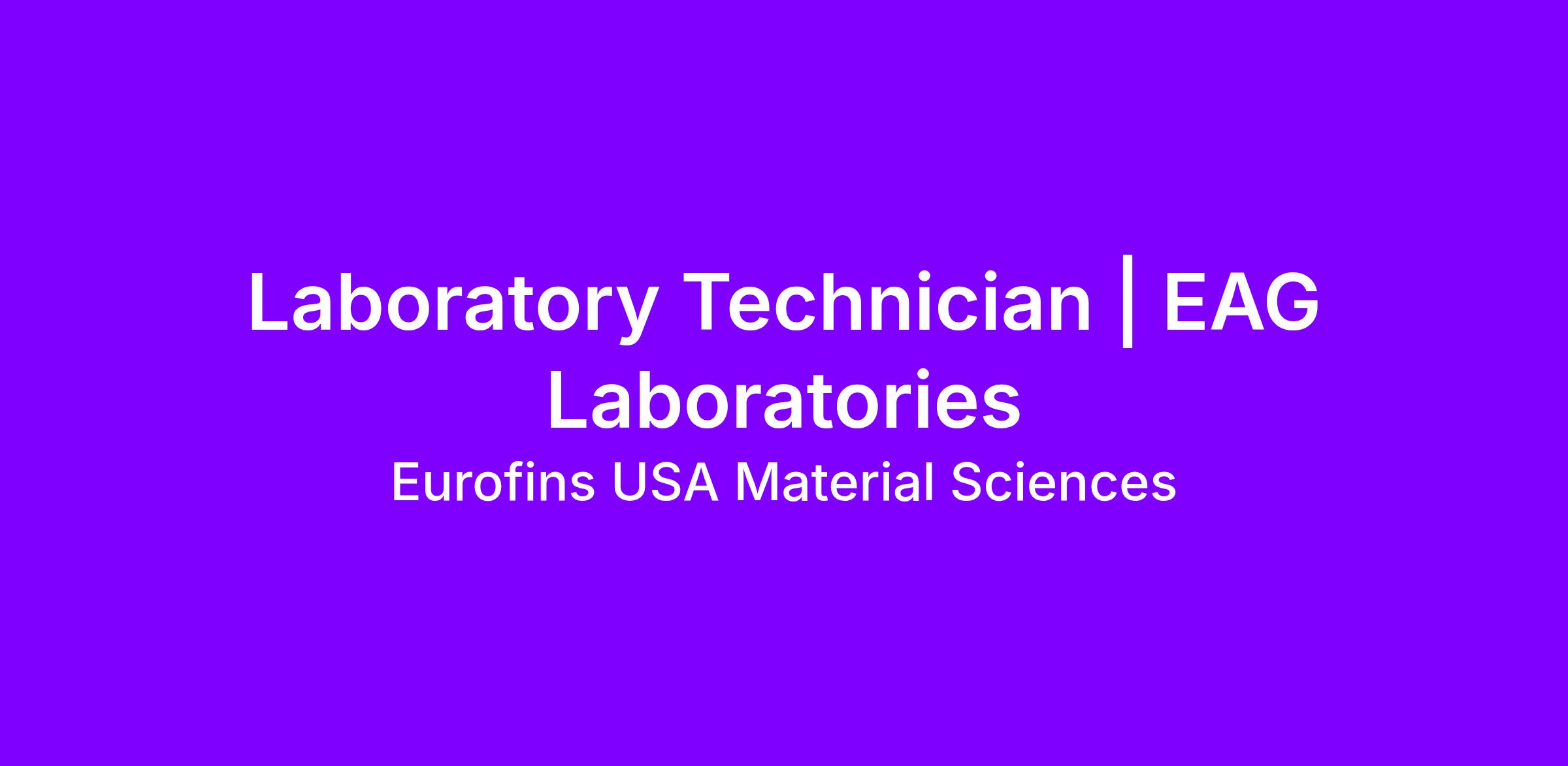 Eurofins EAG Laboratories is an equal opportunity employer and prohibits discrimination, harassment, and retaliation in all of our employment practices. Eurofins EAG Laboratories recruits, hires, trains, promotes and administers all employment-related matters based on an individual's qualifications, abilities, and efforts. Applicants will receive consideration for employment without regard to race, color, religion, sex, age, national origin, citizenship status, sexual orientation, gender identity and/or expression, pregnancy, genetic information, disability, military and/or protected veteran status, and/or any other category protected by applicable federal, state, or local law.