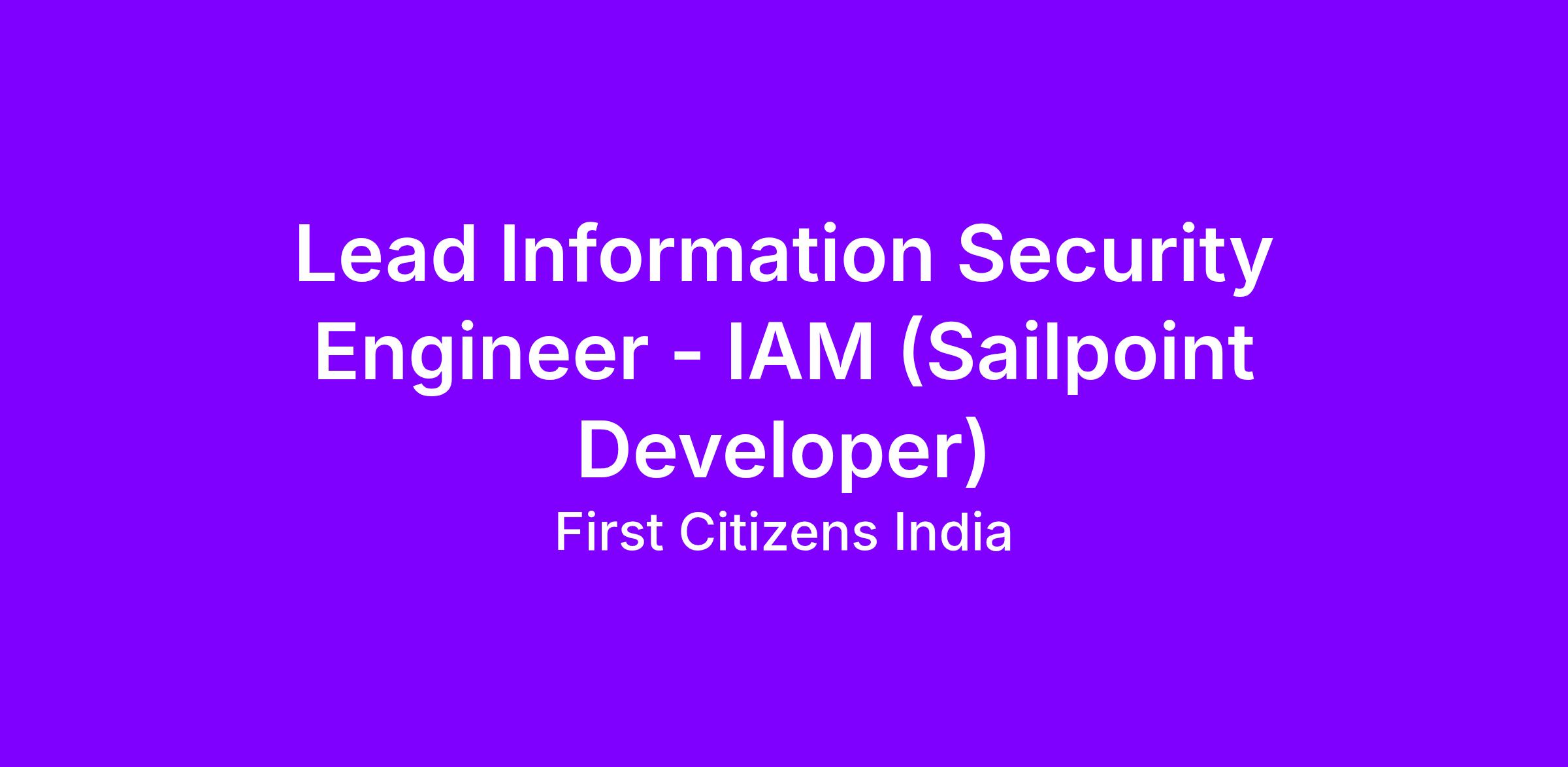 Position Title: Lead Information Security Engineer - IAM