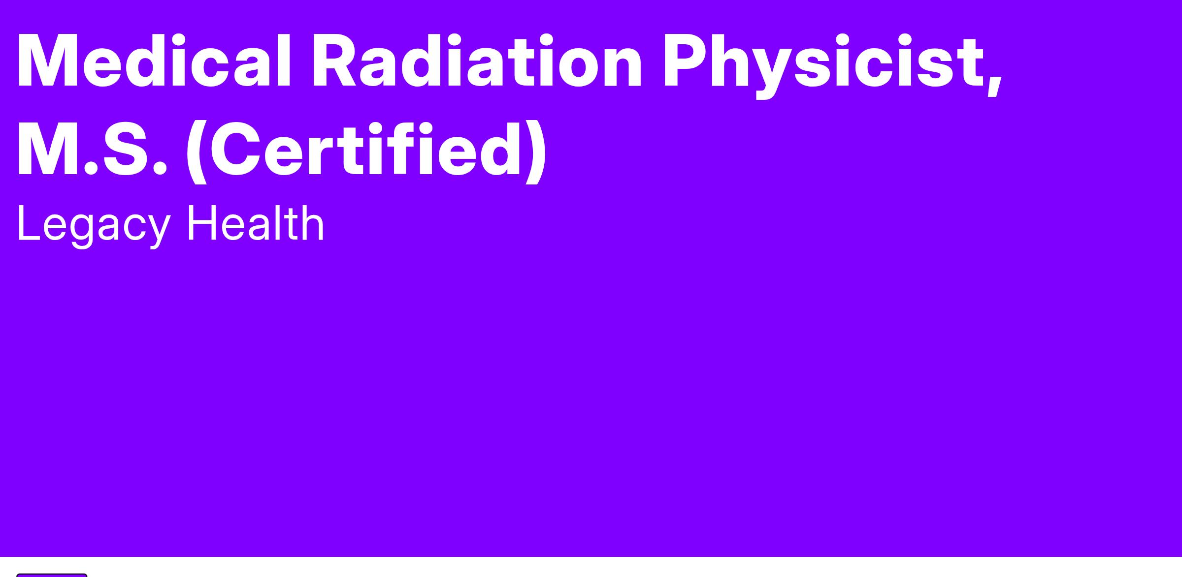 Legacy Health System, which operates three radiation oncology facilities in Portland, Oregon, and Vancouver, Washington, has an opening for a full time, board certified, Radiation Oncology Medical Physicist to backfill for a retirement. The primary focus will be on external beam treatments at the single LINAC facility at Mount Hood Medical Center in Gresham Oregon but will also include participation in programs at the downtown Portland and Salmon Creek facilities both of which are within 20 miles of Mount Hood Medical Center. The preferred candidate will have experience with all facets of an external beam facility including LINAC, CT, and surface guidance, and a history of collaboration with dosimetrists, therapists, and physicians.