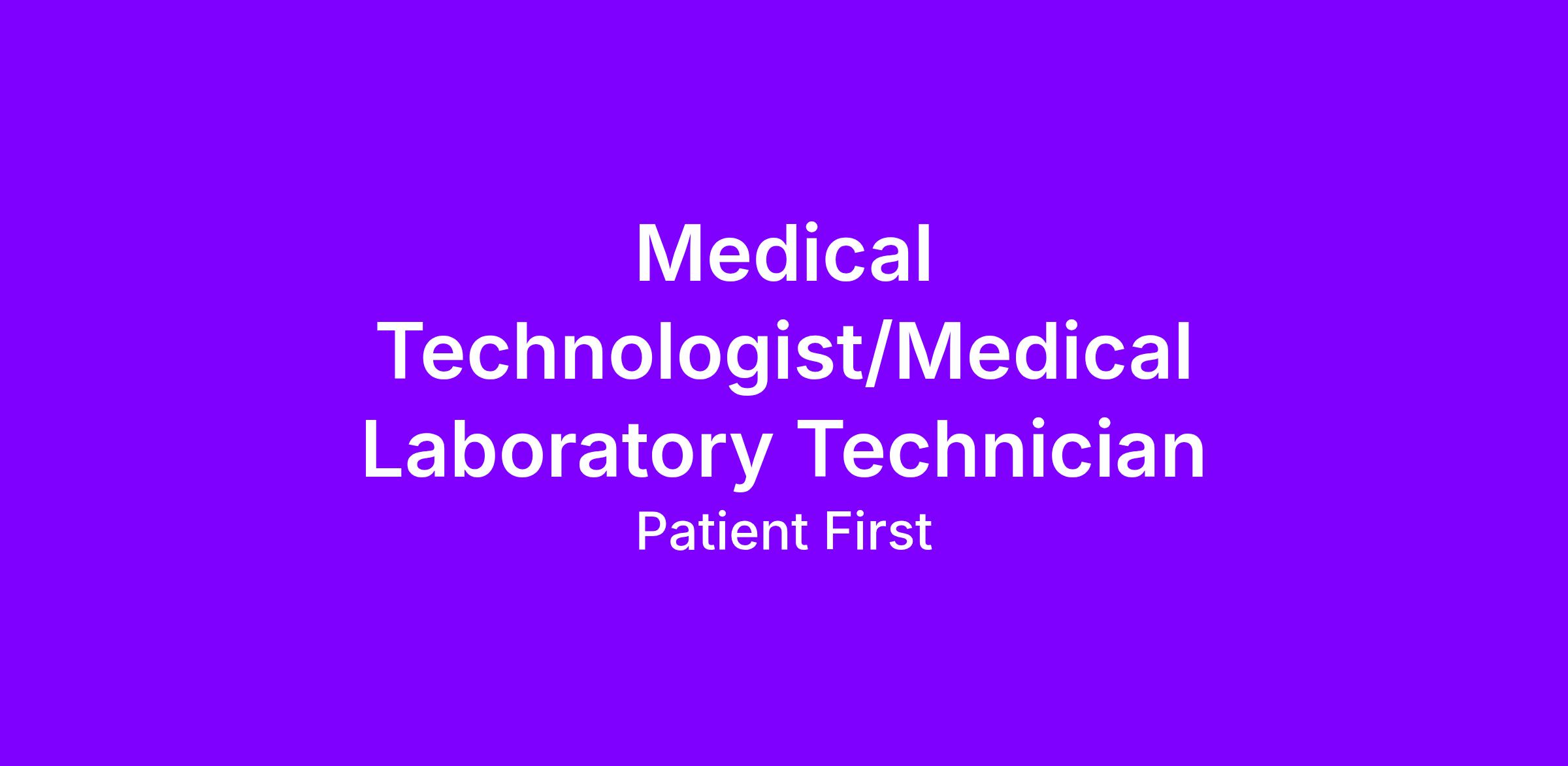 - Registered Medical Technologists (M.T.) or Medical Laboratory Technicians (M.L.T.) by the American Society for Clinical Pathology (ASCP) or other recognized certification agency of medical laboratory professionals preferred;