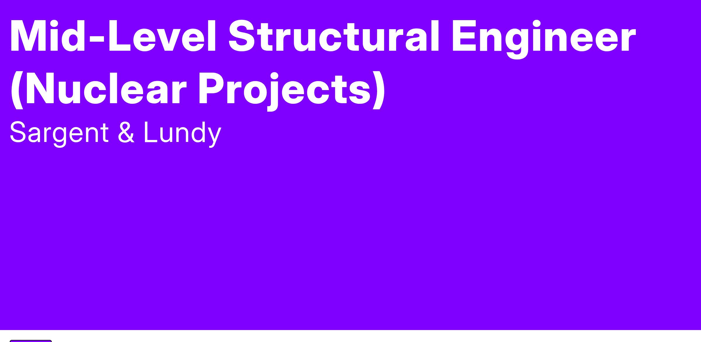 Join Sargent & Lundy's Nuclear Power Group and be part of a team driving the future of clean, carbon-free energy. Since 1954, we’ve been a trusted leader in nuclear engineering, design, and licensing, with expertise spanning small modular reactors (SMRs), advanced reactor technology (ART), and first-of-a-kind commercial reactor restart projects. Our work supports life extensions and digital modernization of existing nuclear plants, coal-to-nuclear conversion initiatives with the Department of State, and international nuclear new-build projects. With a commitment to safety, innovation, and sustainability, we provide cutting-edge solutions that power communities worldwide while reducing emissions. Shape the future of global energy with us!