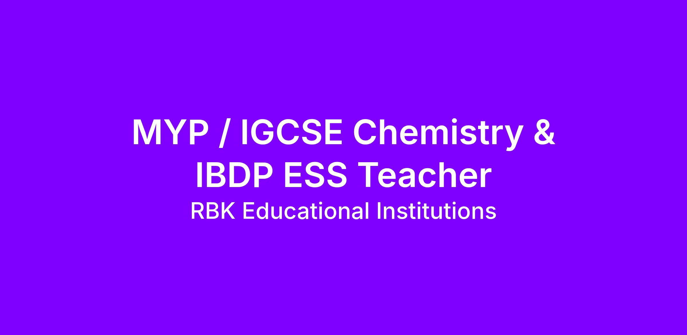 We are looking for an experienced and passionate educator to teach Chemistry across MYP & IGCSE and Environmental Systems & Societies (ESS) for IBDP. The role involves delivering engaging, inquiry-based lessons aligned with international curricula while fostering critical thinking and real-world application.