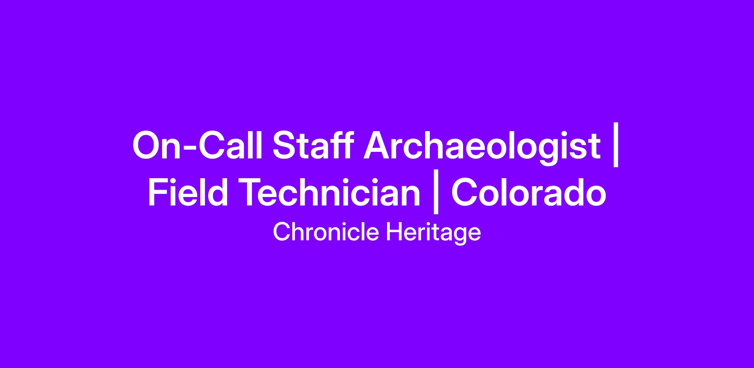 Experienced Field Tech | Staff Archaeologist | On-Call Hourly | Colorado
