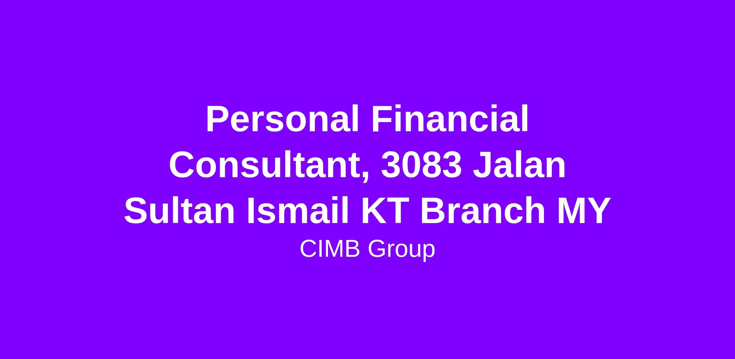 Personal Financial Consultant, 3083 Jalan Sultan Ismail KT Branch MY