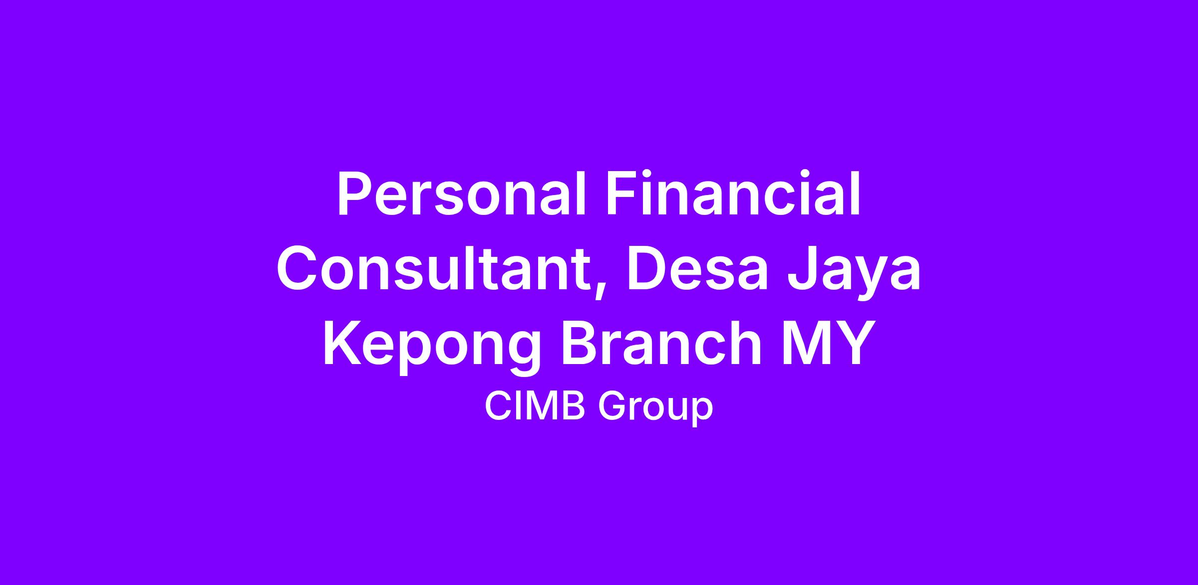 Personal Financial Consultant, Desa Jaya Kepong Branch MY