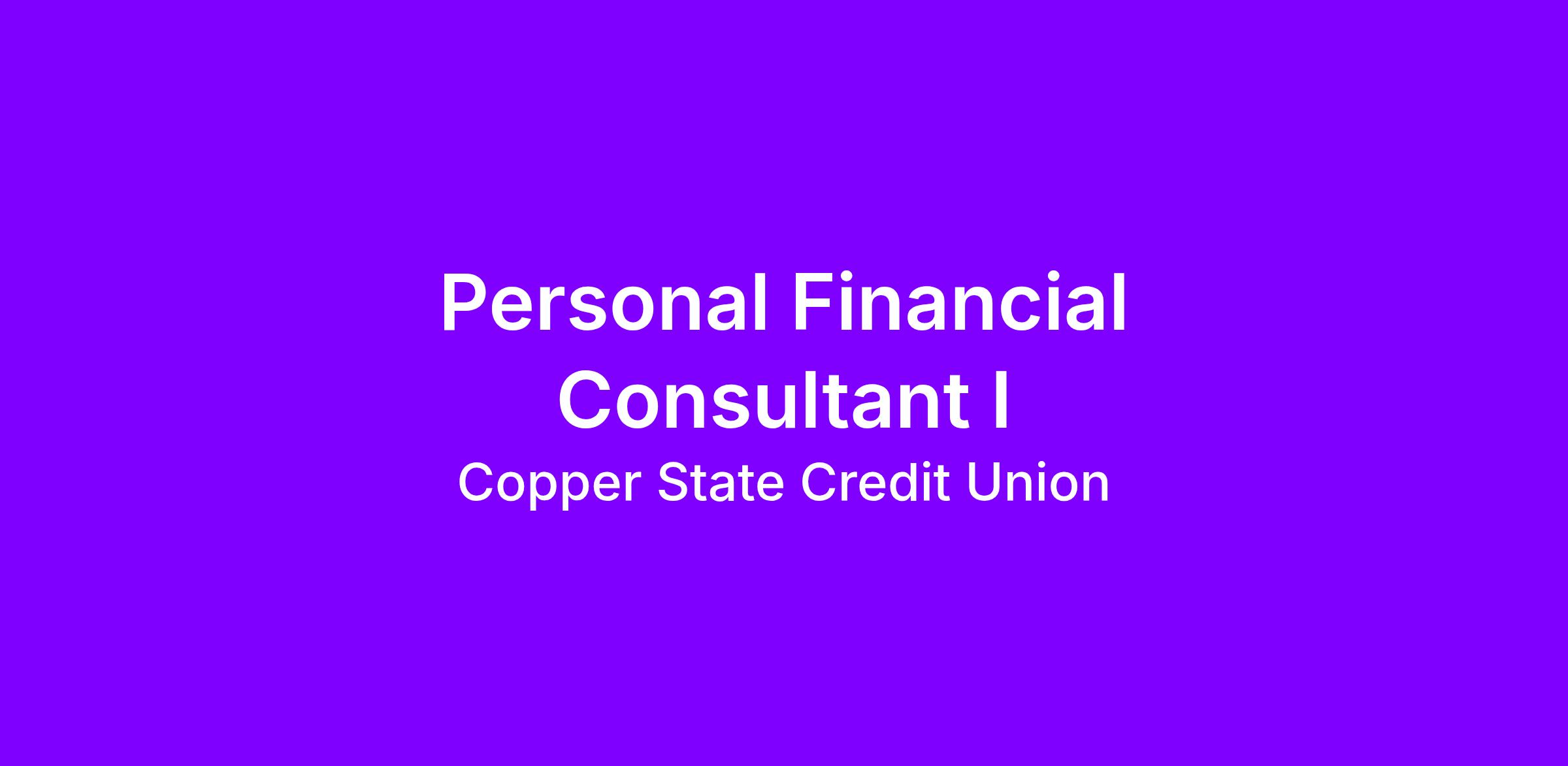 As a Personal Financial Consultant I you will: