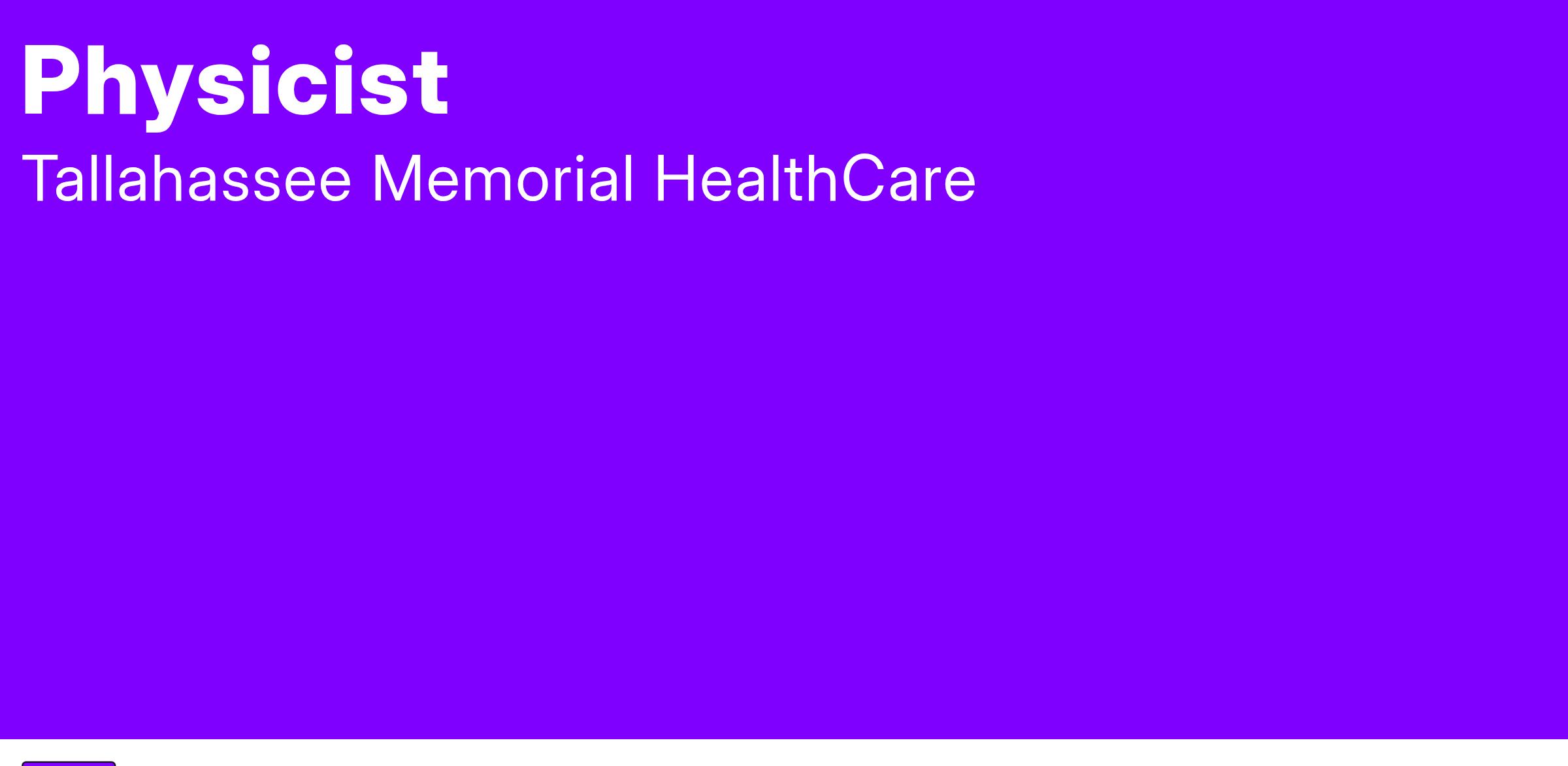 Tallahassee Memorial Healthcare is seeking an experienced medical physicist to join our growing radiation oncology team at the comprehensive cancer center located in Tallahassee, Florida.