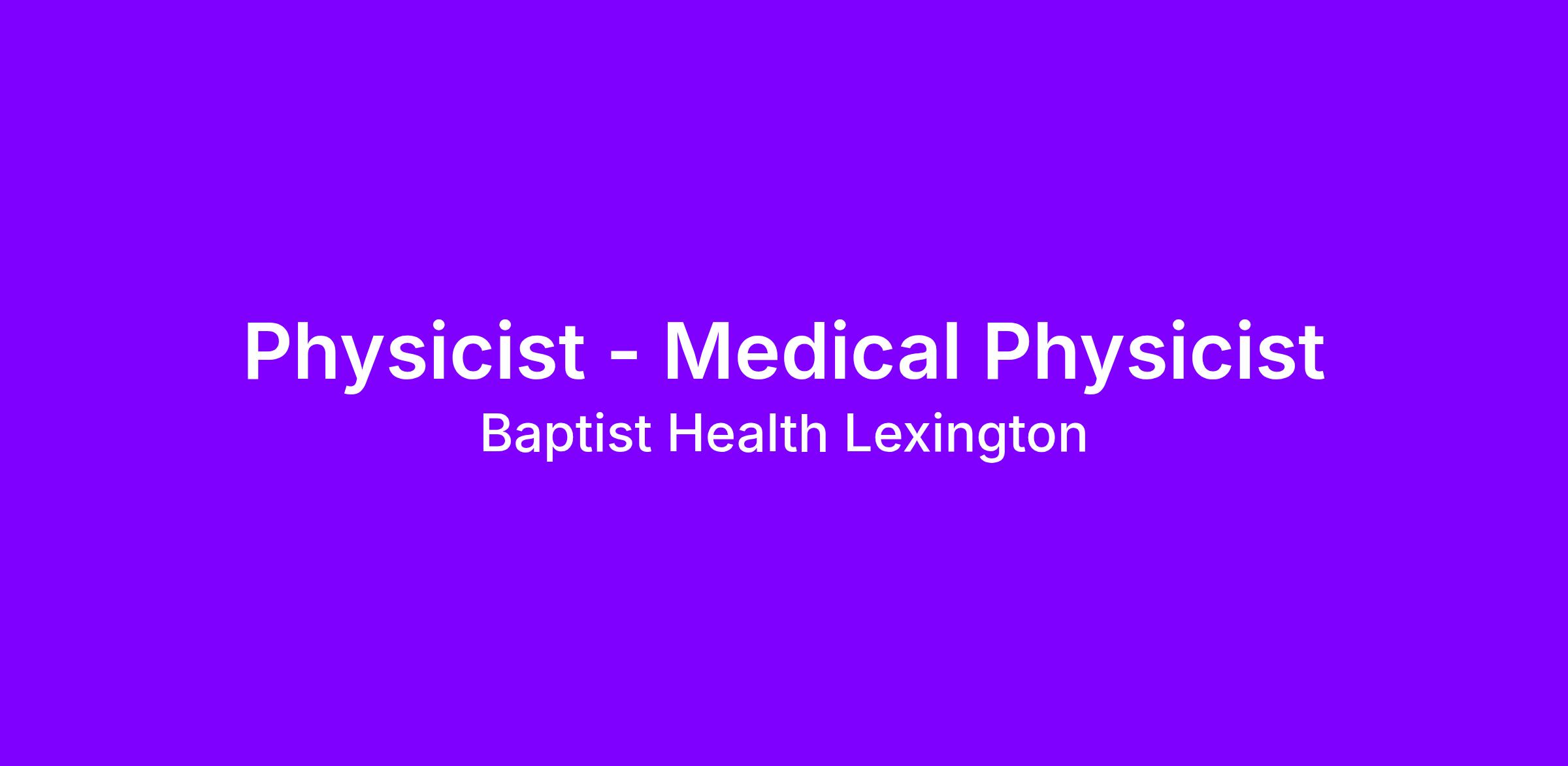 Genie Healthcare is looking for a Physicist to work in Medical Physicist for a 13 weeks travel assignment located in Lexington, KY for the Shift (5x8 Days - Please verify shift details with recruiter, 07:00:00-15:00:00, 8.00-5).