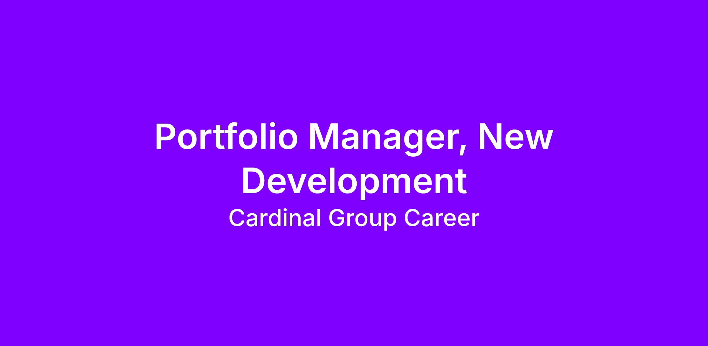 POSITION: Portfolio Manager, New Development