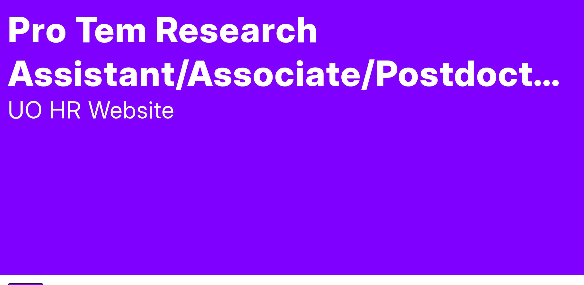 The University of Oregon is an equal opportunity, affirmative action institution committed to cultural diversity and compliance with the ADA. The University encourages all qualified individuals to apply and does not discriminate on the basis of any protected status, including veteran and disability status. The University is committed to providing reasonable accommodations to applicants and employees with disabilities. To request an accommodation in connection with the application process, please contact us at uocareers@uoregon.edu or 541-346-5112.