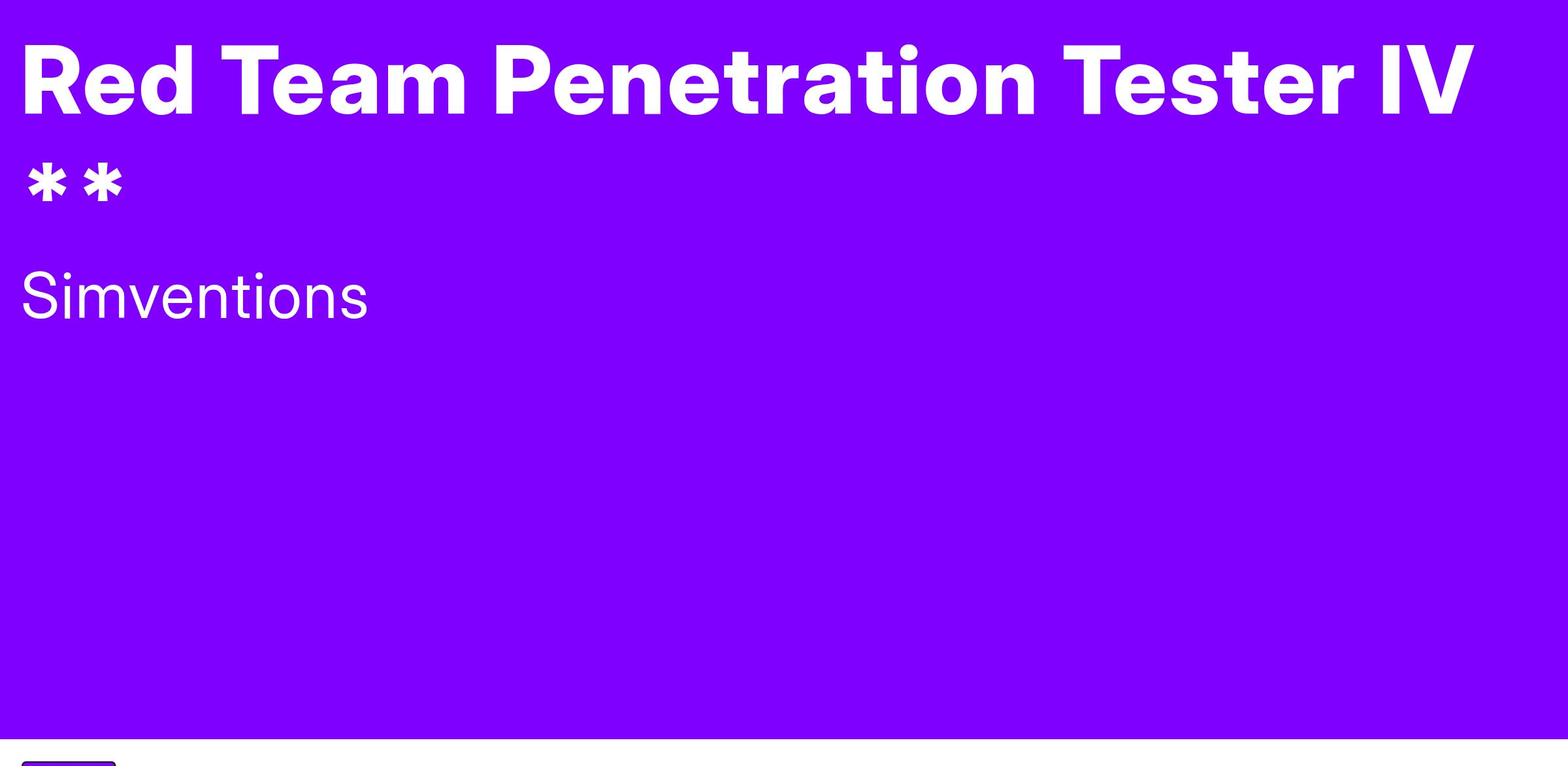 SimVentions, consistently voted one Virginia's Best Places to Work, is looking for an experienced professional to join our team! As a Red Team Penetration Tester IV, you will be responsible for leading and executing complex penetration testing events and conducting offensive cybersecurity operations for the U.S. Government and DoD systems. You will work collaboratively with Blue Team and Cybersecurity professionals to enhance overall cyber posture.