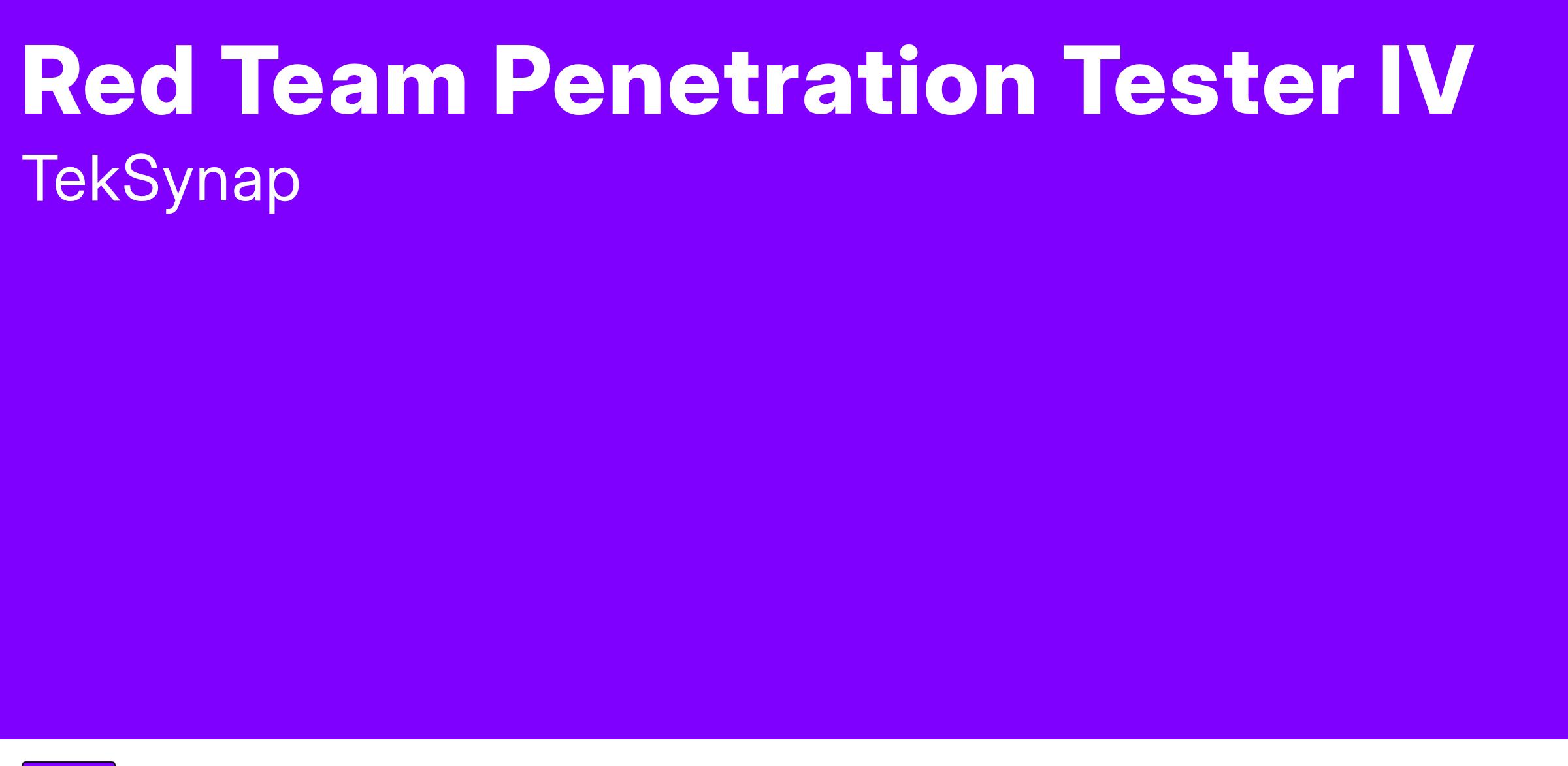 We are seeking a Red Team Penetration Tester IV to join our team supporting Department of Navy.