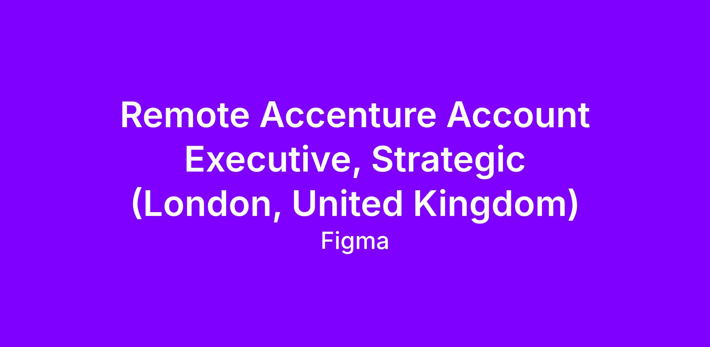 We are looking for a Strategic Account Executive who will play a critical role driving sales and maximizing expansion opportunities within one of our top accounts within Figma. The account you will be responsible for will be Accenture, targeting, building and nurturing positive relationships with key C-level decision-makers, understanding complex business needs, and delivering innovative solutions across our product suite. This is an opportunity to accelerate your career, learn from leading sellers in the industry and build an incredible network of cross functional partners throughout Figma.