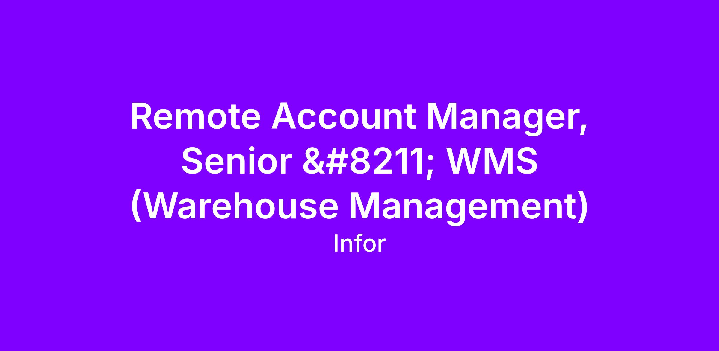 The Account Manager will be responsible for value-selling the Infor Warehouse Management/Supply Chain (WMS) solutions to existing Infor accounts. The Account Manager shall identify and qualify sales opportunities and execute intelligent pursuit plans. This role is a product specific role where the Account Manager will serve as an overlay for a mix of different industries.