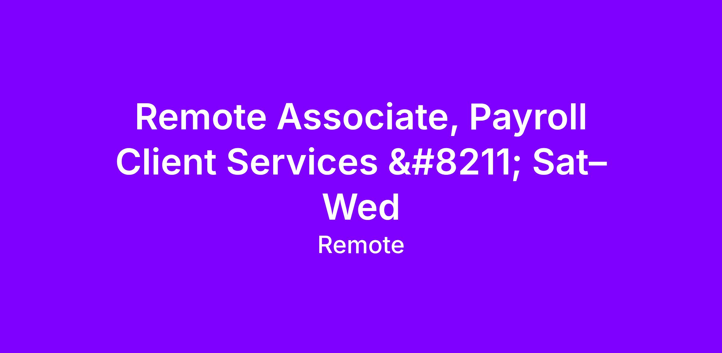 - Cross-functional collaboration: Work with Payroll Operations, Customer Experience, and other teams to support timely and accurate payroll cycles.