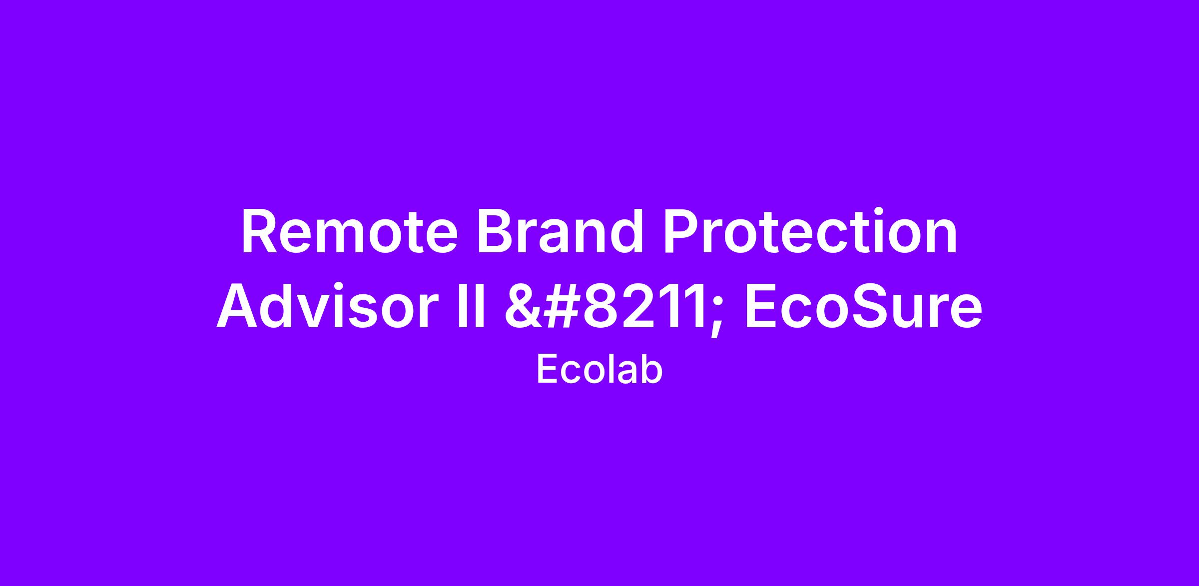 Ecolab is seeking a Brand Protection Advisor to join its EcoSure division, an industry leader in brand protection programs, to drive operational excellence and help our clients grow their business. Our associates are valued experts in brand standards, guest experience, food safety, public health, workplace safety, and product quality. EcoSure clients include top brands in the hospitality industry including foodservice and hotels, as well as convenience stores, facilities, and long-term care. We are seeking professionals to provide best-in-class, comprehensive on-site visits, and provide teaching and coaching to help our clients maintain the highest standards.