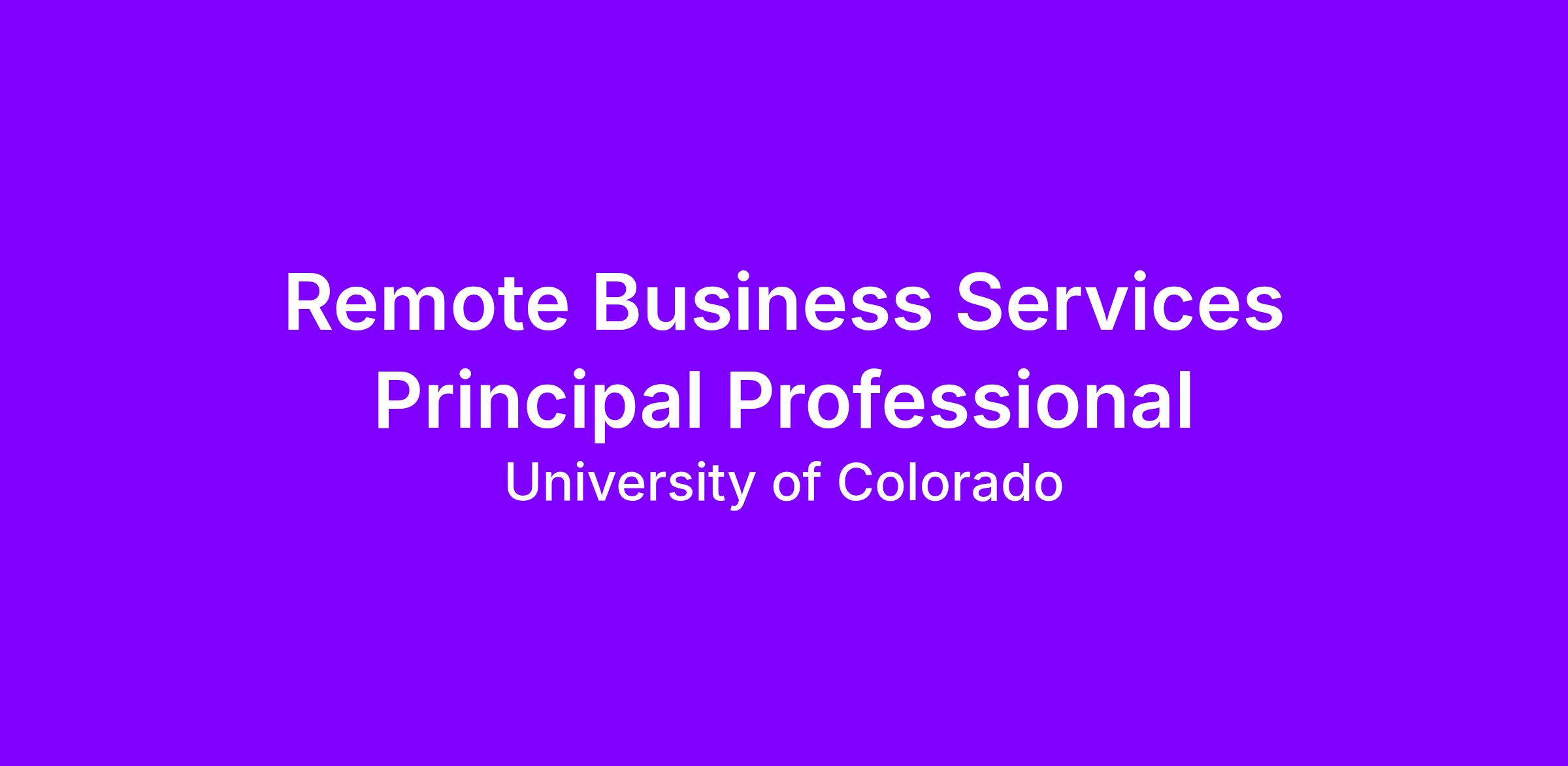 Business Services Principal Professional