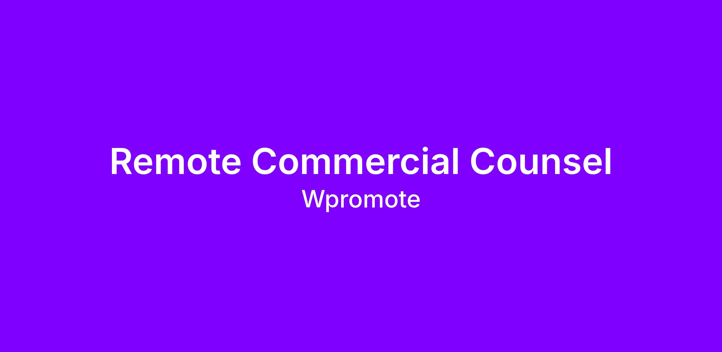 As Commercial Counsel at Wpromote, you will join the Legal team that is a strategic partner to the business, operating at the intersection of cutting‑edge technology and go‑to‑market execution. In this role, you will structure and negotiate high‑impact commercial deals with clients, partners, and vendors that not only protect the company but also unlock revenue, drive sustainable growth for our clients, and strengthen critical partnerships. We drive clarity on risk, develop practical solutions to complex issues, and partner closely with internal stakeholders to close complex deals. This role will primarily support commercial legal work, with the opportunity to contribute across other areas as needed.