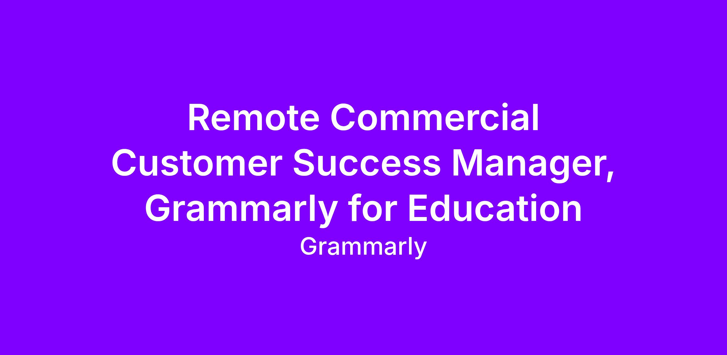 As a member of the Grammarly for Education team, your role as a Commercial Customer Success Manager will be pivotal in accelerating our efforts to drive adoption, realize value, and ultimately lead our customers to expand. This role reports to the Commercial CS Manager and will be instrumental in supporting a customer success engine that aims to maximize Grammarly’s value for our Grammarly for Education customers.