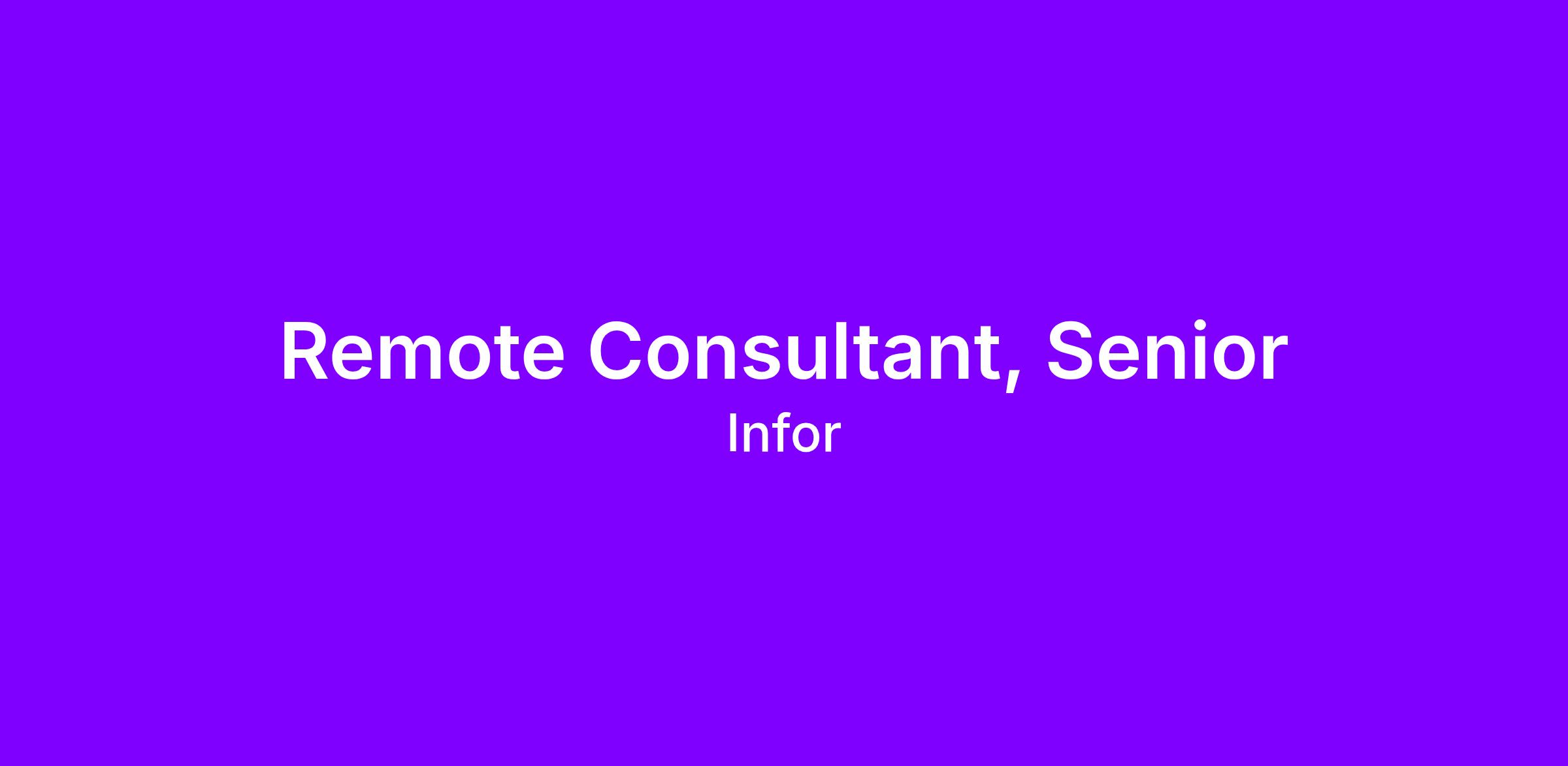 Country United Kingdom City Remote Location Job ID 47438 Department Infor Consulting Services Experience Level MID_SENIOR_LEVEL Employment Status FULL_TIME Workplace Type Remote