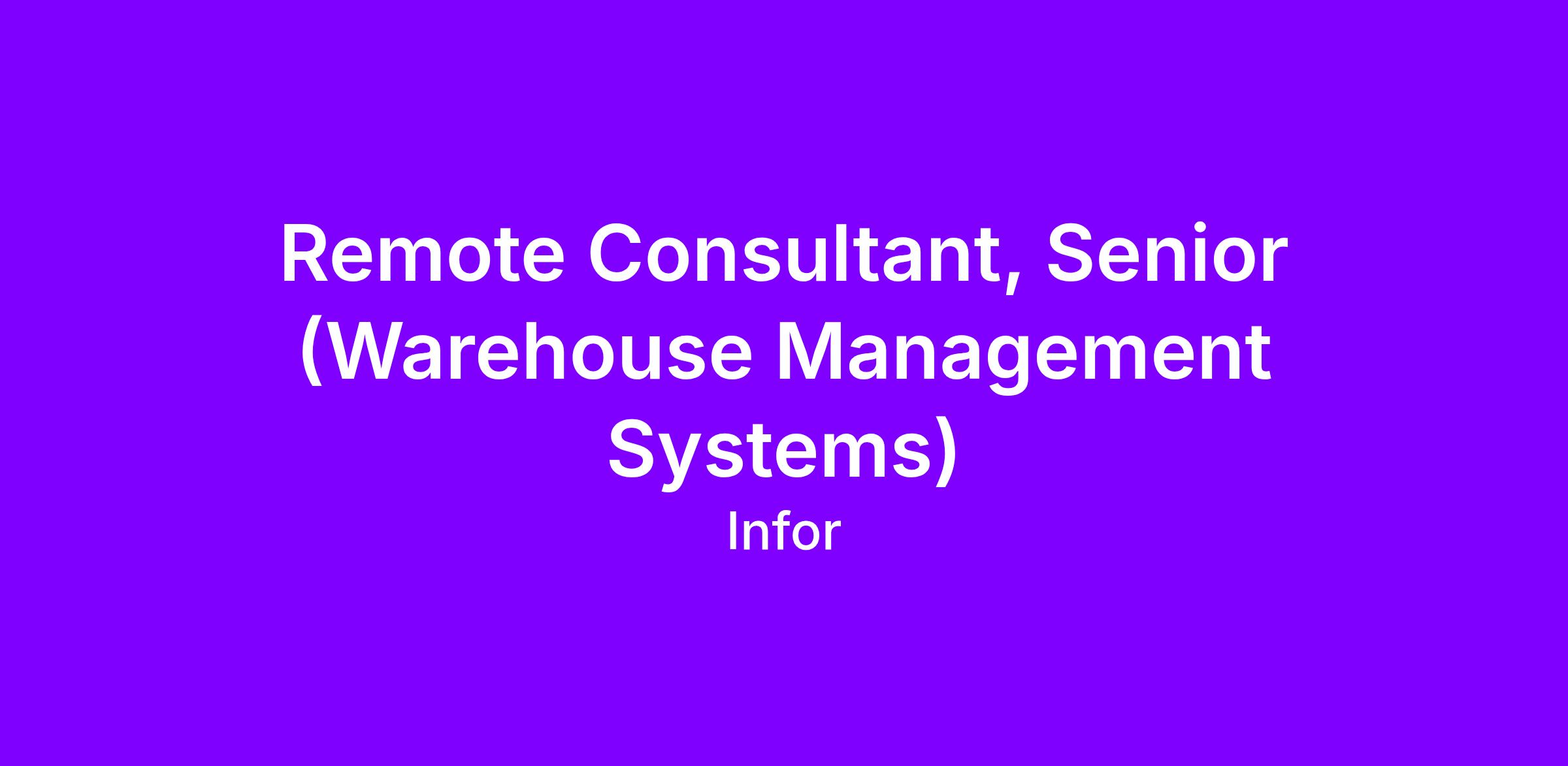 Infor is seeking a Warehouse Management System (WMS) Functional Consultant to join the consulting practice and support project implementations of Infor’s Supply Chain Execution (SCE) Warehouse Management Solution (WMS). This position reports to the Senior Director of the Consulting Practice and contributes to delivering configured warehouse management solutions for customer operations.