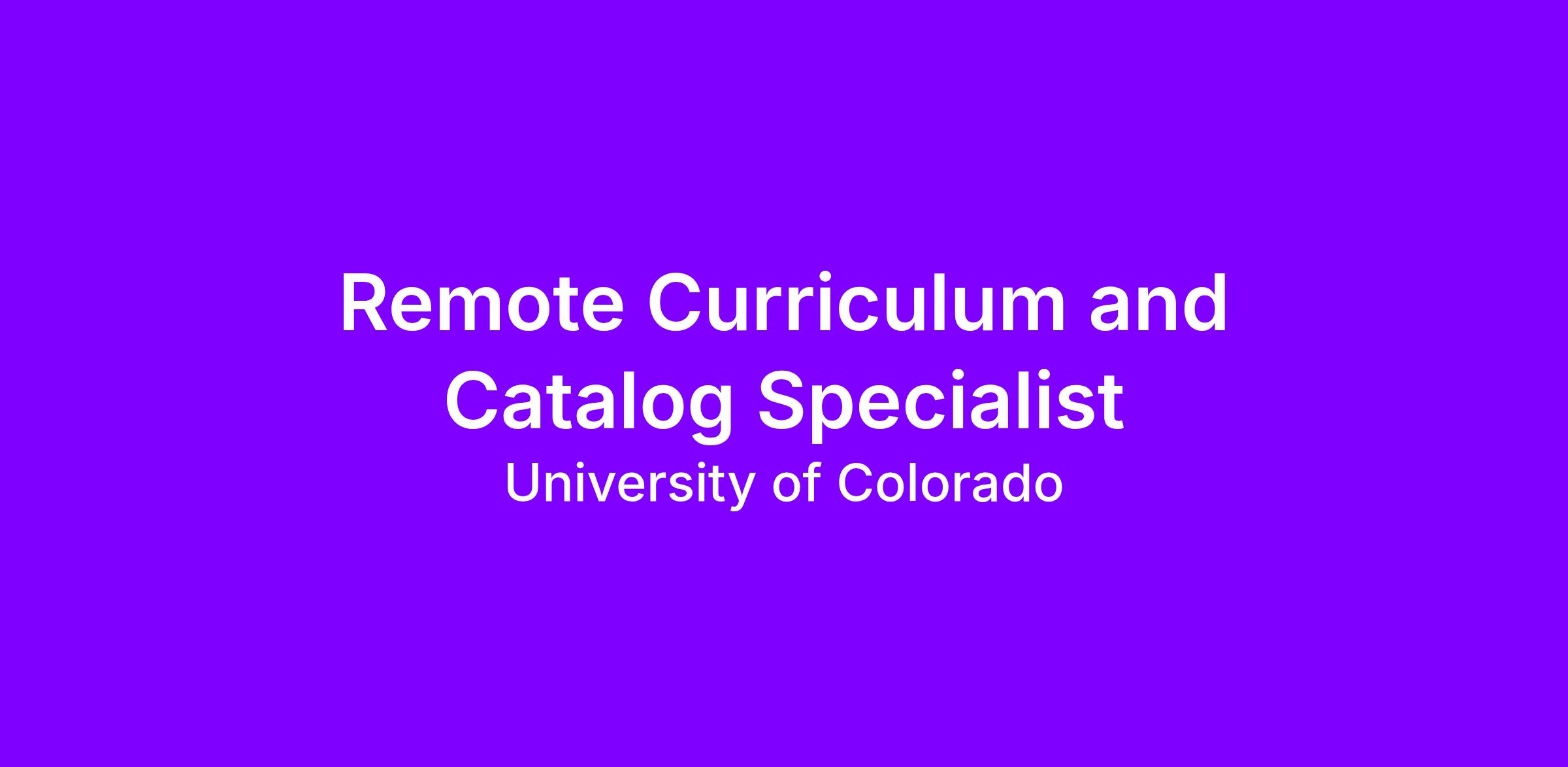 Curriculum & Catalog Specialist: